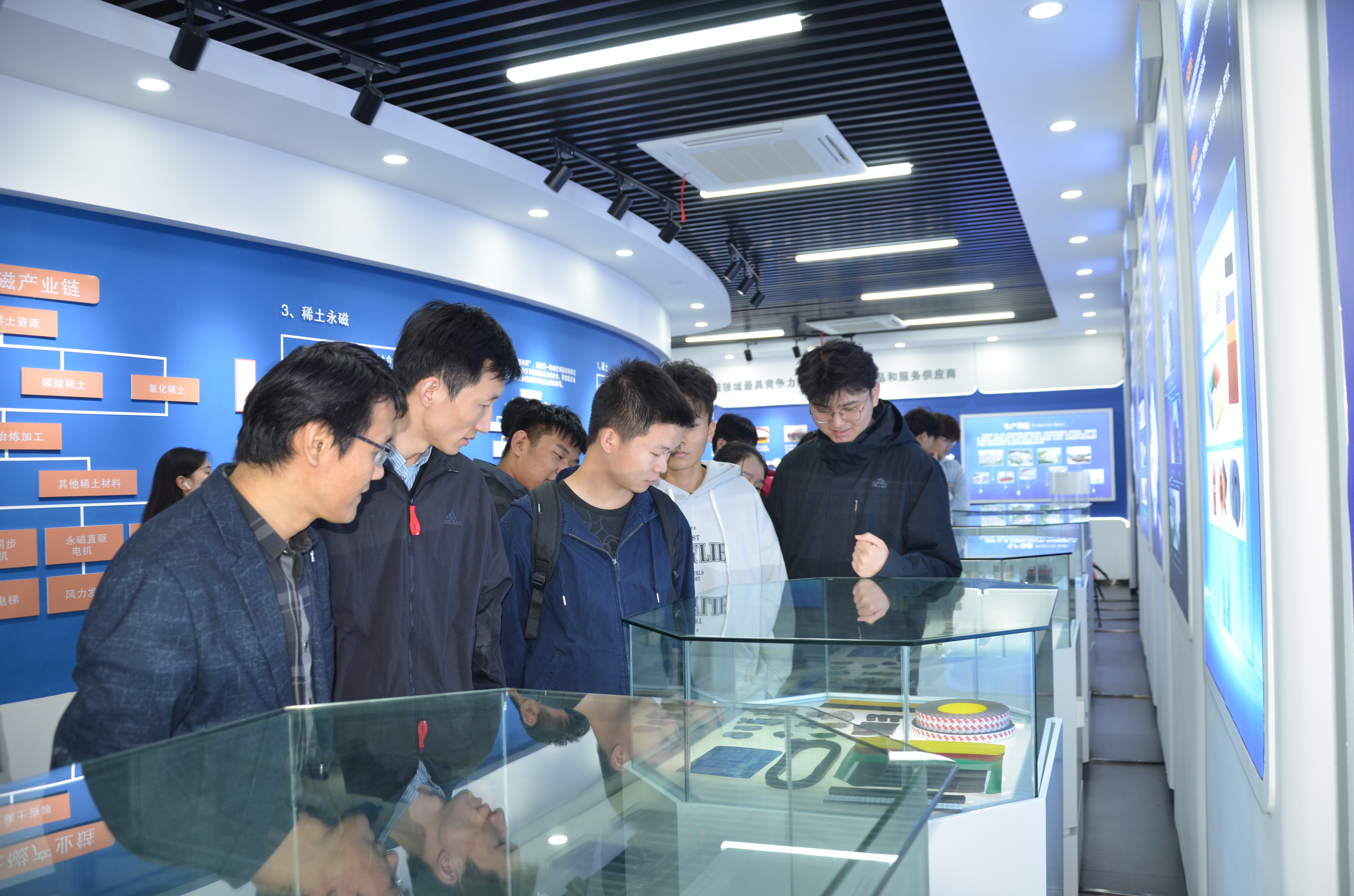吕涛对学院一行的来访表示热烈欢迎,在厂区相关负责人的陪同和讲解下,学院师生近距离参观了加分分厂、渗透分厂、材料分厂等车间,进一步促进了学生对磁性材料的认识和理解。座谈交流中,吕涛详细介绍了公司的发展历程和产品生产过程,围绕人才需求、发展前景等方面与学生进行深入交流。