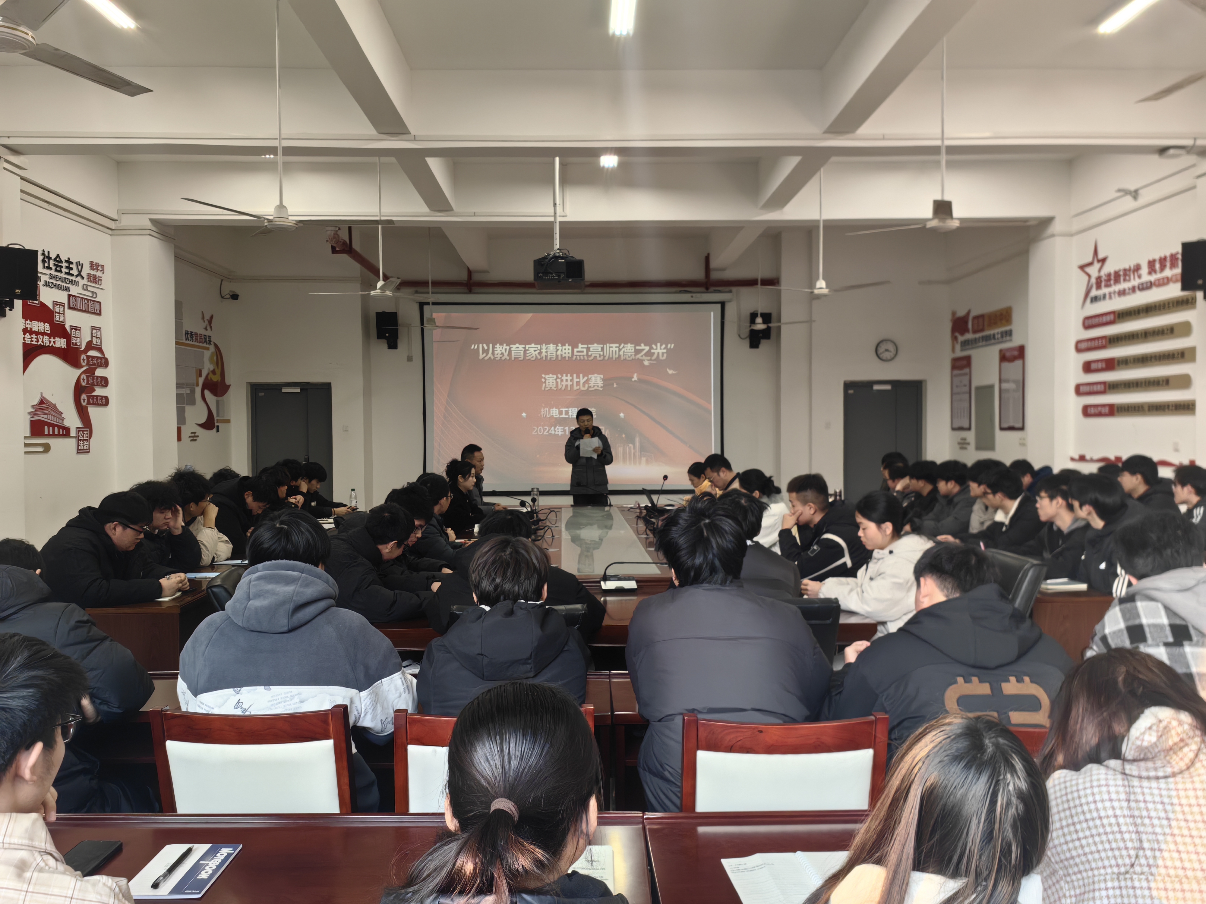 为深入贯彻党的二十大和二十届二中、三中全会精神,积极响应教育部号召,大力弘扬教育家精神,进一步加强师德师风建设,KY开元集团官网于12月4日下午14:00在机电楼二楼会议室举办了“以教育家精神点亮师德之光”主题演讲比赛。此次比赛旨在通过教师的亲身讲述,展现新时代教育工作者的高尚情操和卓越风采,进一步激发学院全体教职工的教育热情和使命感。