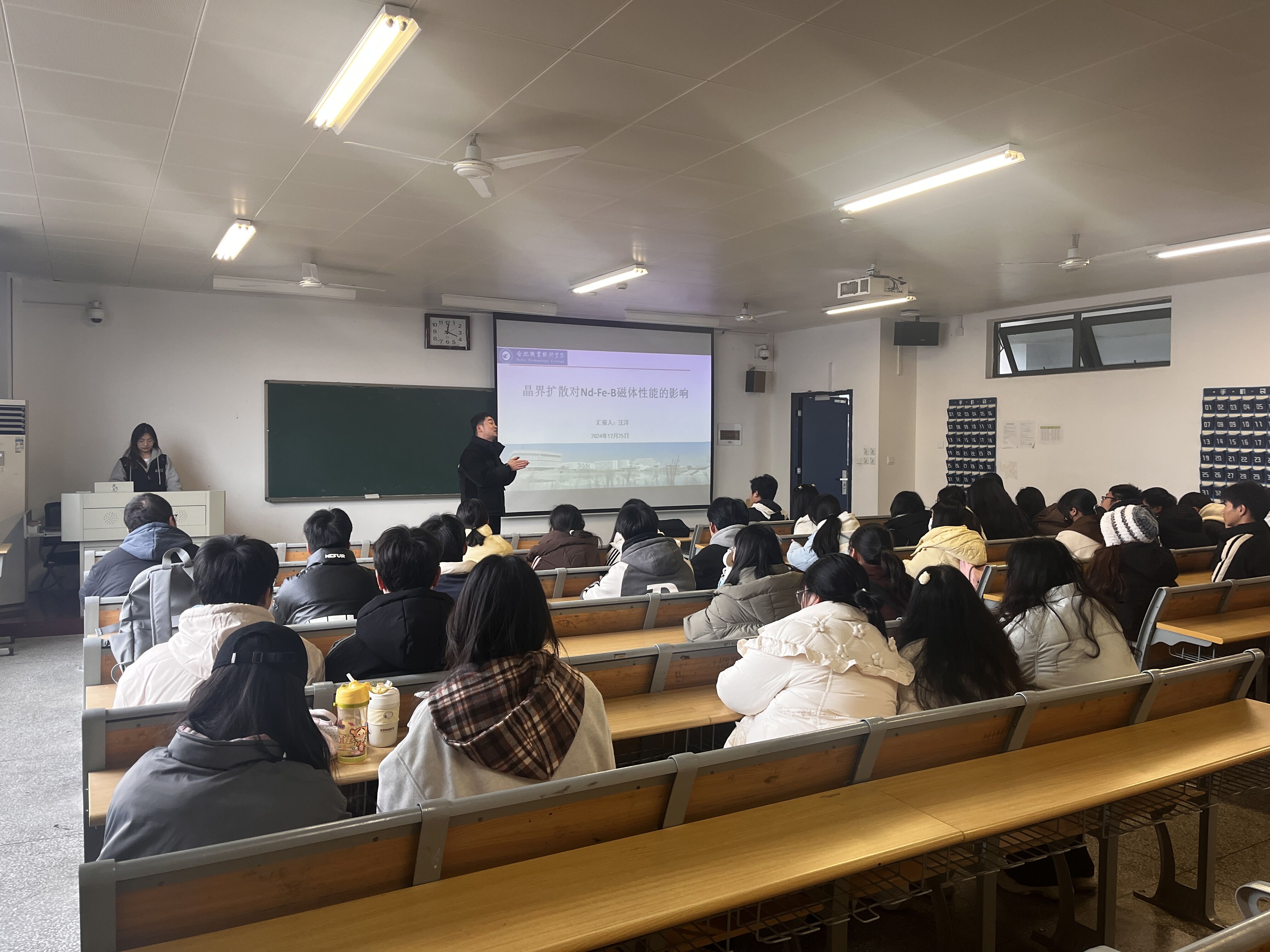 为加强对稀土永磁领域的认识、开阔师生科研视野,跟踪最新科研成果。2024年12月25日下午,由KY官网青年教师汪洋主讲的学术讲座在汇心湖校区教学南楼511教室顺利开展,本次讲座以“晶界扩散对Nd-Fe-B磁体性能的影响”为主题,学院各专业学生参加。