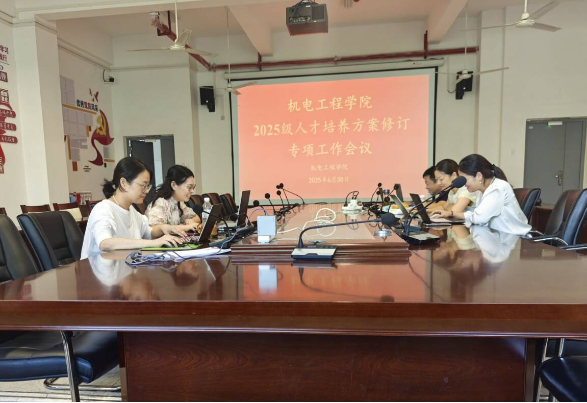 2025年6月30日,KY开元集团官网在203会议室召开2025级专业人才培养方案专项修订会议。会议由院长胡木林主持,副院长高敏和机械设计与制造、机电一体化技术等六个专业的专业带头人参会。