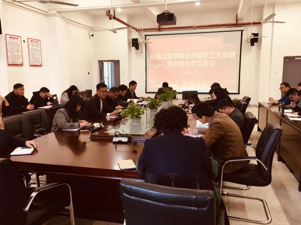 4月14日下午,KY开元集团官网在机电楼二楼会议室召开全体教职工大会暨四月份党员理论学习会议。校党委委员、副校长孙兴林及全体教职工参加会议,会议由该院党总支副书记(主持工作)王克勇主持。