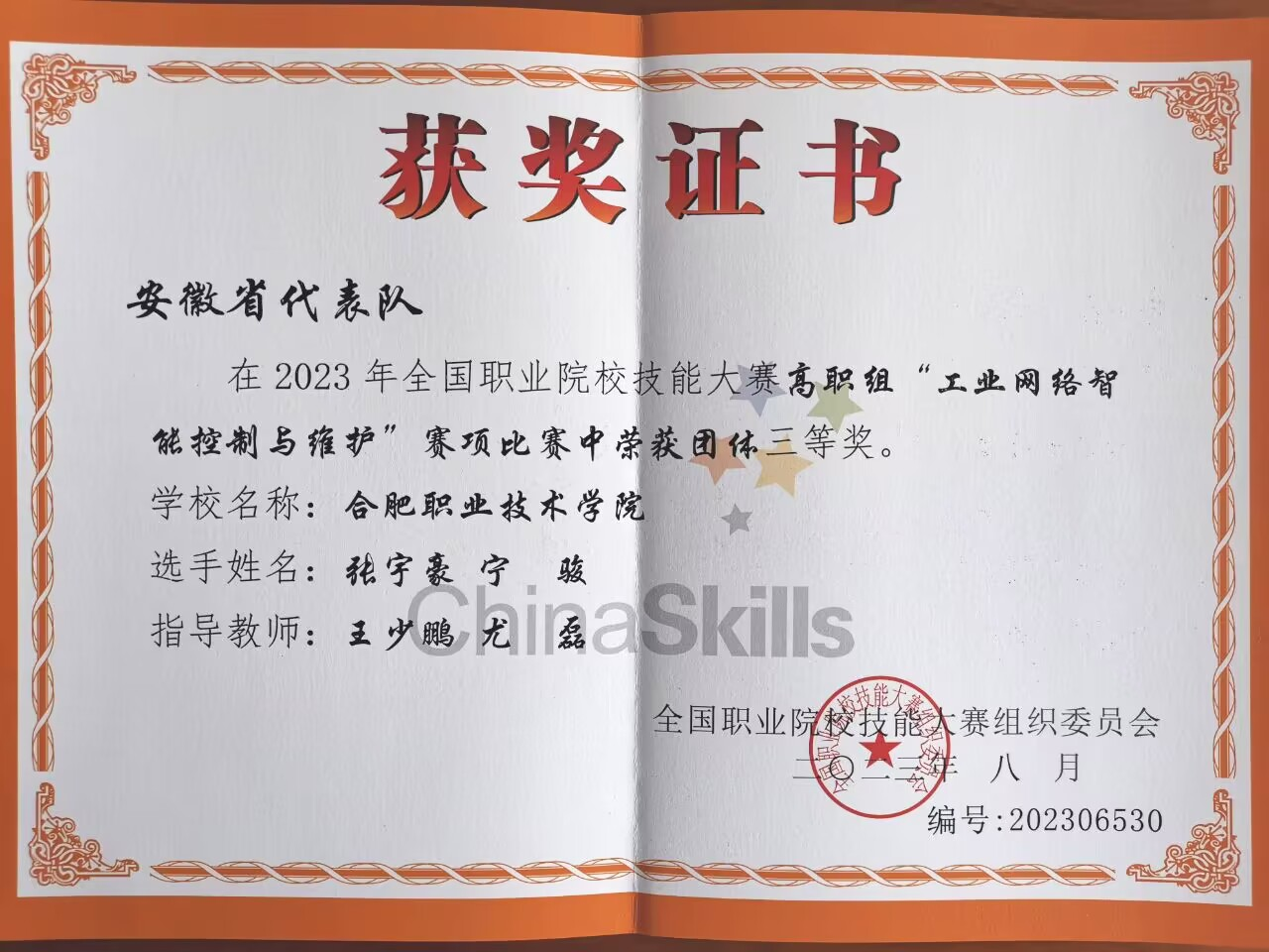 2023年全国职业院校技能大赛高职组新增赛项“工业网络智能控制与维护”已于8月15日至16日在包头职业技术学院圆满举行。KY官网张宇豪、宁骏两位选手发挥出色,荣获团体三等奖 。