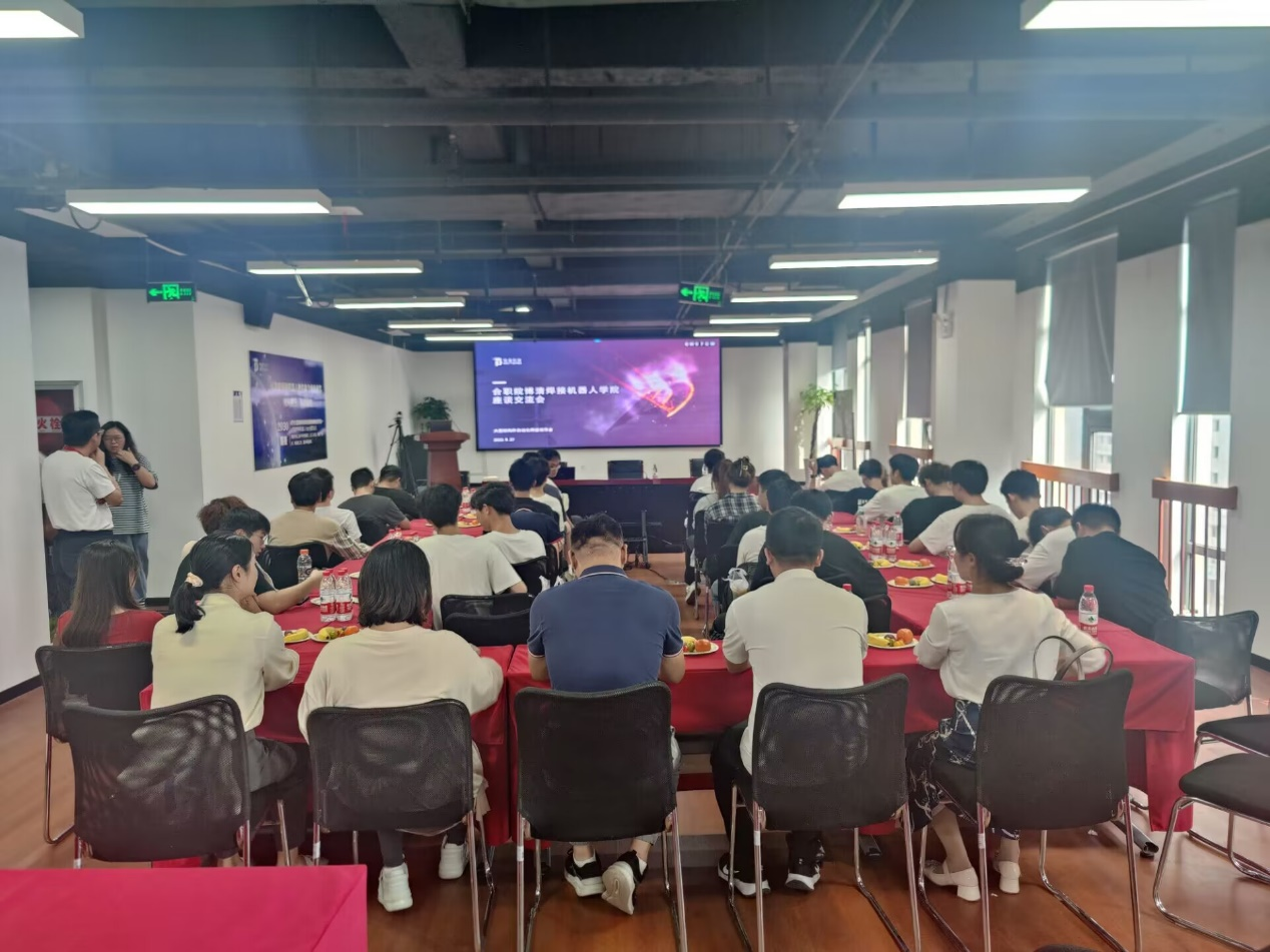 随后在公司会议室开展了博清焊接机器人学院座谈交流会。博清科技创始人、董事长冯消冰博士从公司概况与企业文化、焊接机器人类别与应用场景、焊接泰斗潘际銮院士先进工作事迹、焊接机器人学院培训项目、企业福利、生活与工作环境、公司晋升发展通道、未来工作方向、公司优秀平台和优秀团队等方面进行了详细介绍。并且双方围绕博清焊接机器人学院人才培养、教育教学安排、实习就业、焊接机器人技能大赛等内容进行了充分交流。