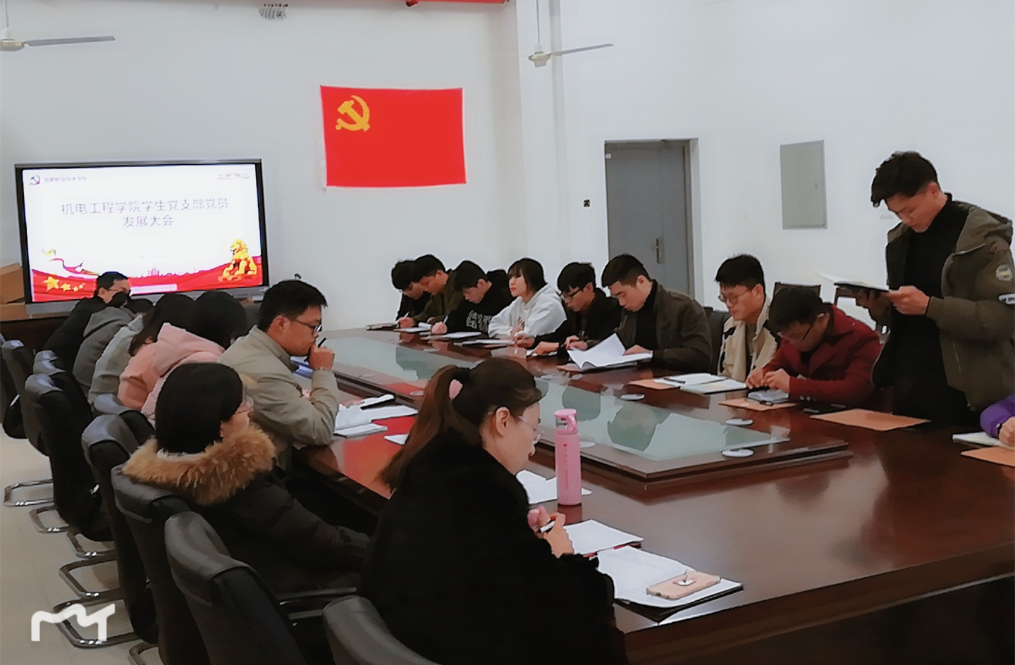 12月5日下午,KY开元集团官网学生党员发展及转正大会在机电工程楼二楼会议室召开。学生党支部全体党员、培养联系人、4名预备党员及11名发展对象参加了会议。会议由学生党支部书记朱何萍主持。