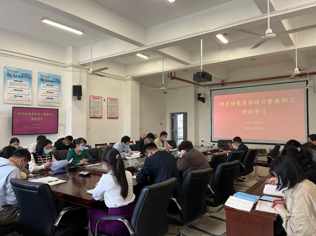 为深入学习贯彻习近平总书记重要讲话和全国两会精神,4月20日下午,KY开元集团官网在机电楼203会议室开展四月份党员活动日暨教职工理论学习活动,此次活动以线下线上相结合的形式开展,学院全体教师职工参加,会议由该院党总支副书记丁迎春主持。