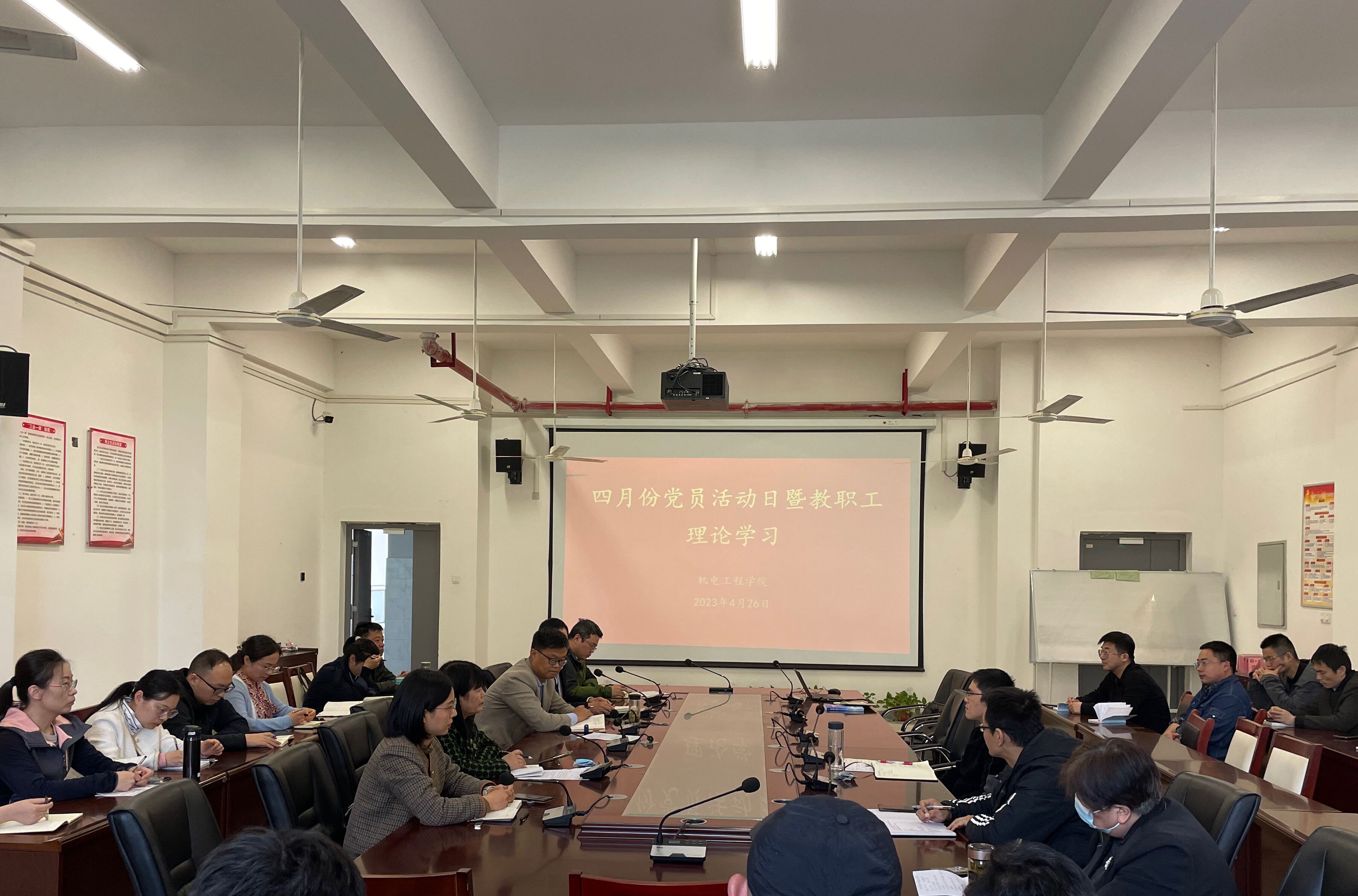 4月26日,KY开元集团官网在机电楼二楼会议室召开四月份党员活动日暨教职工理论学习活动,KY开元集团官网全体教职工参会,会议由党总支书记王克勇主持。