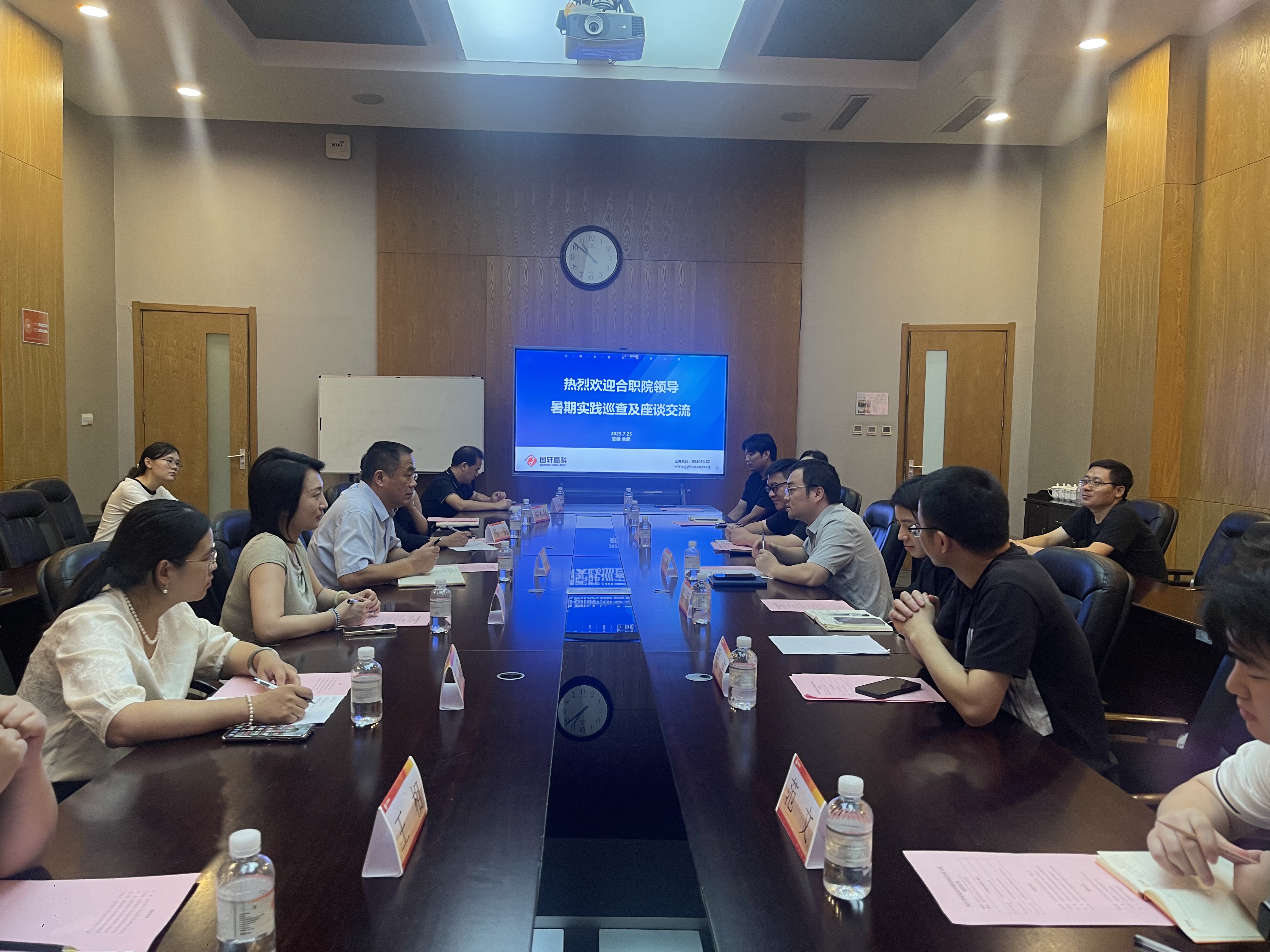 7月25日上午,校党委委员、副校长范家茂带队深入合肥国轩高科动力能源有限公司,走访慰问参加2025年合肥市职业院校专业课教师企业实践活动的实践教师,并与国轩高科工研总院科技管理中心副总监吴林博士等企业相关人员及全体实践教师进行了座谈交流。