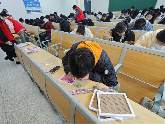 本次活动吸引了众多同学的参与,他们积极响应,踊跃报名。活动现场一片欢声笑语,气氛热烈。在心理部成员的指导下,同学们分组进行了创意贴画。通过小组合作,他们发挥想象力,用彩色钻石贴画搭配出各种独特的图案和形状,展现了他们的艺术才华与团队精神。
