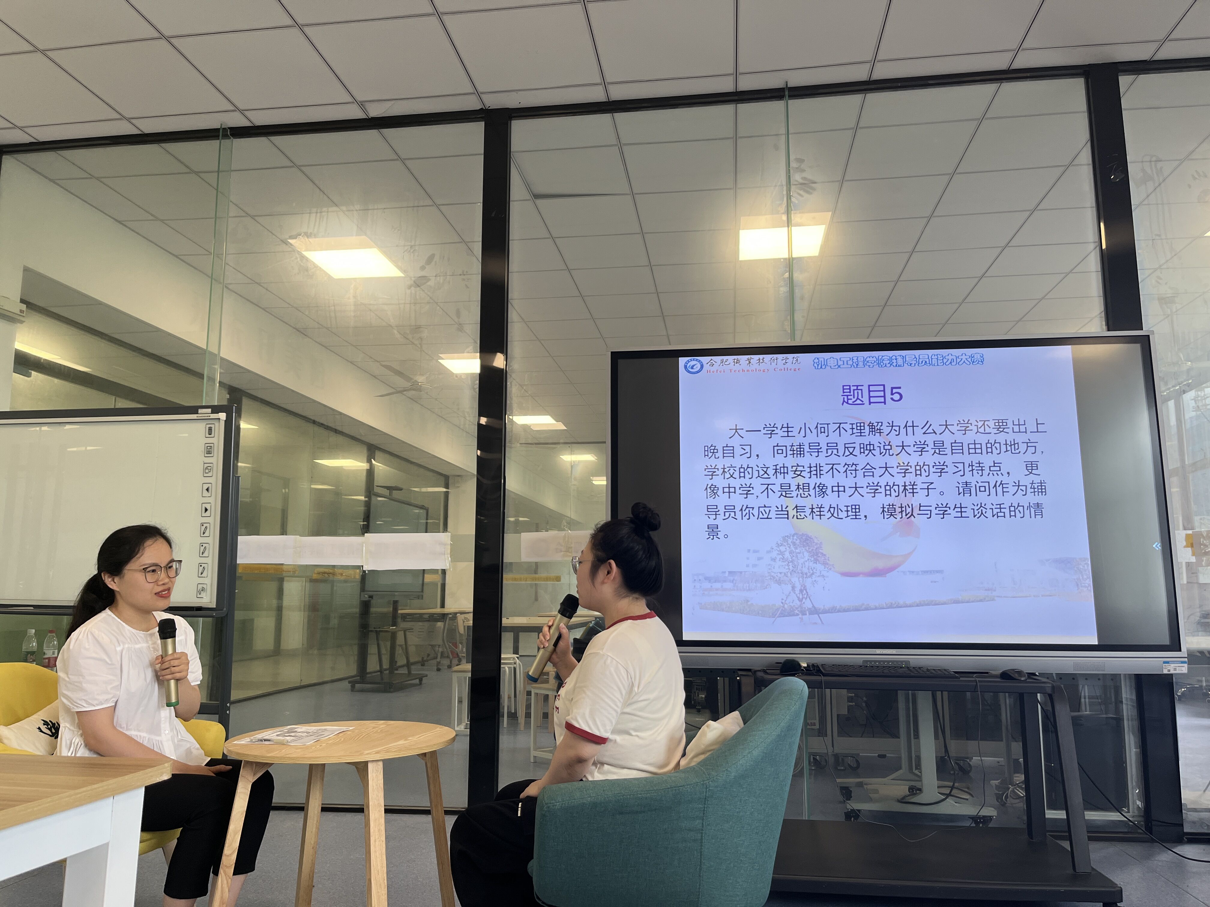 本次比赛共有18名专职辅导员、专业课教师参加。谈心谈话比赛结合日常学生工作真实案例,由专职辅导员配演,从学生思想政治教育与价值引领、党团和班级建设、学业指导、日常事务管理、心理健康教育与咨询、网络思想政治教育、危机事件应对、职业规划与就业指导、理论和实践研究等方面还原师生现实谈话场景。充分体现了参赛选手对学生高度的人文关怀,也展现出良好的政策解读运用、信息抓取分析以及教育引导能力。参赛选手们用温和的话语,有理有据、有理有情、循序渐进地解决同学们的疑惑并指引未来的发展方向。