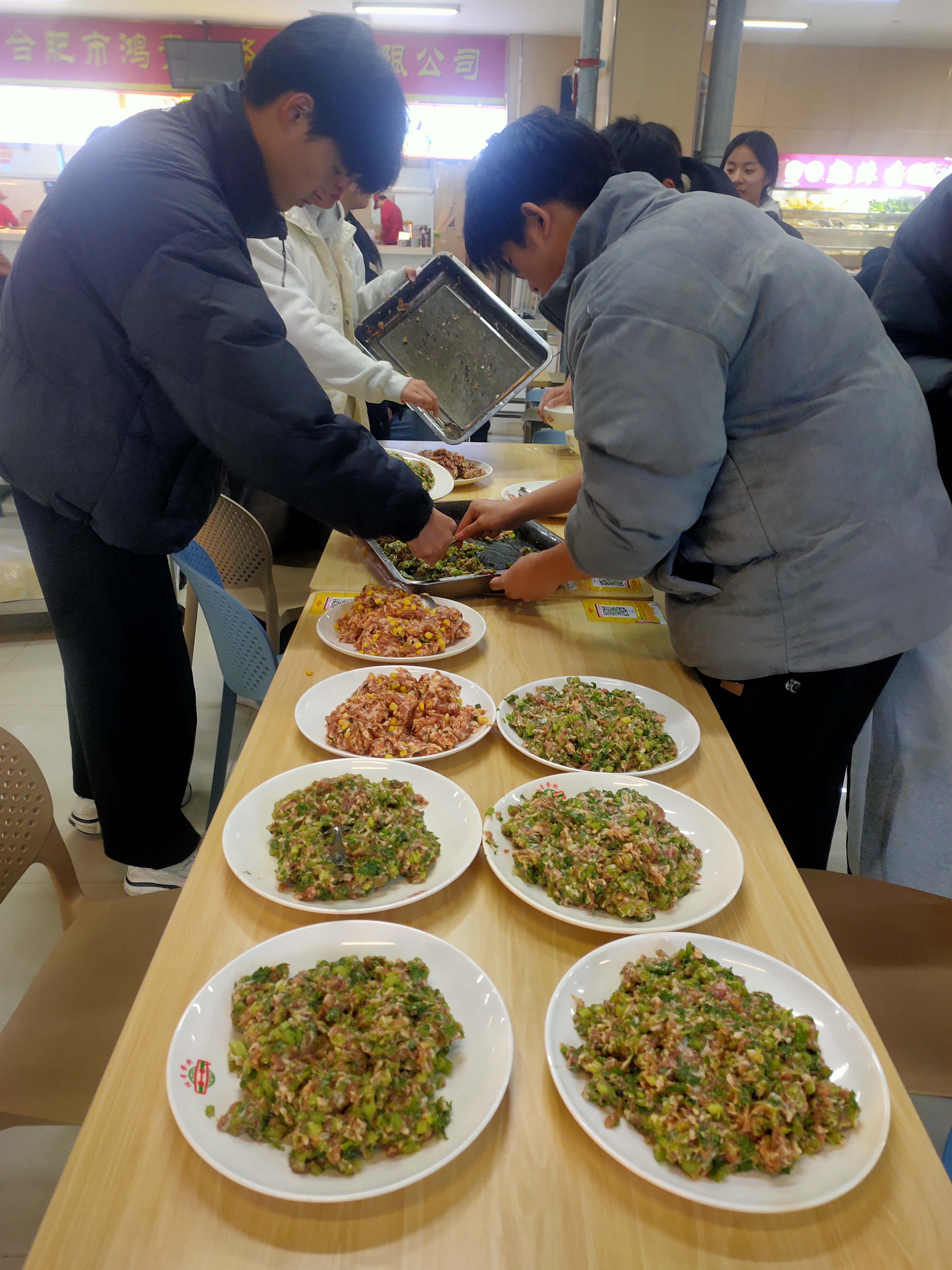 在同学们的齐心协力下,形态各异的饺子摆满了餐盘。它们有的宛如弯弯月牙,有的恰似饱满元宝,个个都凝聚着同学们的巧思与心意。在等待水饺烹制的间隙,一场你猜我画的游戏热烈展开,现场气氛欢快活跃,欢声笑语接连不断,洋溢着温馨与热烈。片刻后,热气腾腾的饺子新鲜出炉,同学们井然有序地排队,领取志愿者分发的饺子,津津有味地品尝着自己亲手包制的成果,大家纷纷合影留念,定格这段温暖时光,留下独属于冬至的记忆。