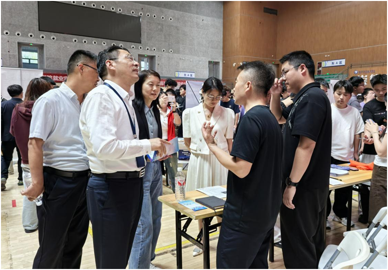 王杰才一行现场与企业招聘人员深入交流,询问行业发展现状和企业用人需求,并关心学生实习和就业规划,积极了解学生求职意愿和面试情况,鼓励学生把握机遇,迎接新的挑战。该院专业教师全程为学生答疑解惑,提供实习就业和征兵入伍指导,让学生们更加明确职业发展的方向,激发他们投身社会、实干报国的热情,树立对未来职业生涯的信心和决心。