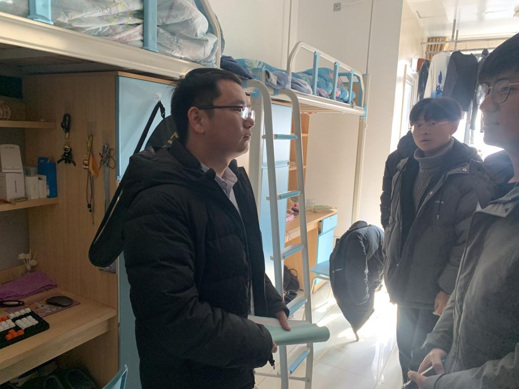 12月29日下午一点,KY开元集团官网党总支副书记(主持工作)王克勇带领全体辅导员组织开展了宿舍安全检查活动,重点检查了男宿舍用水用电安全。提醒同学们在平常的生活中提高安全意识,禁止使用大功率电器,不要私拉电线;冬季天气干燥,注意防范火灾。叮嘱寝室成员之间要和睦相处,建立友好的寝室关系。嘱咐同学们要落实好晨午晚检制度,勤开窗,多通风;寝室长要定时对寝室进行全面消毒,切实做好疫情防护工作;同时嘱咐同学们注意天气变化,穿衣保暖,适当锻炼,养成良好的卫生习惯。同学们纷纷表示会自觉遵守学校的规章制度,注意用水用电安全。