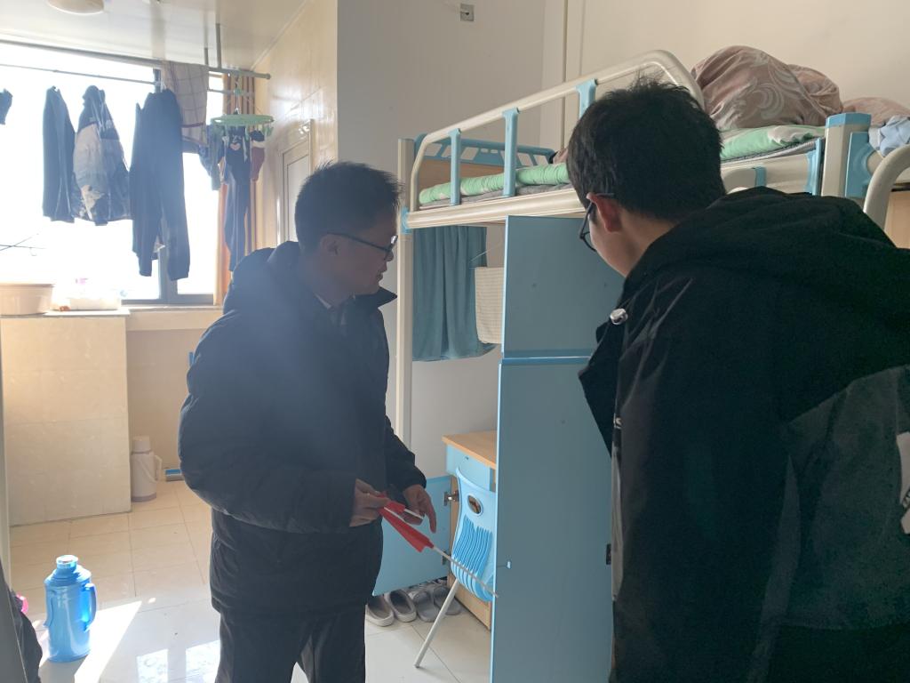 12月29日下午1点,KY开元集团官网党总支副书记(主持工作)王克勇带领全体辅导员组织开展了宿舍安全检查活动,重点检查了宿舍用水用电安全。提醒同学们在平常的生活中提高安全意识,禁止使用大功率电器,不要私拉电线;冬季天气干燥,注意防范火灾。叮嘱寝室成员之间要和睦相处,建立友好关系。嘱咐同学们要落实好晨午晚检制度,勤开窗,多通风;寝室长要定时对寝室进行全面消毒,切实做好疫情防护工作;同时嘱咐同学们注意天气变化,穿衣保暖,适当锻炼,养成良好的卫生习惯。同学们纷纷表示会自觉遵守学校的规章制度,注意用水用电安全。