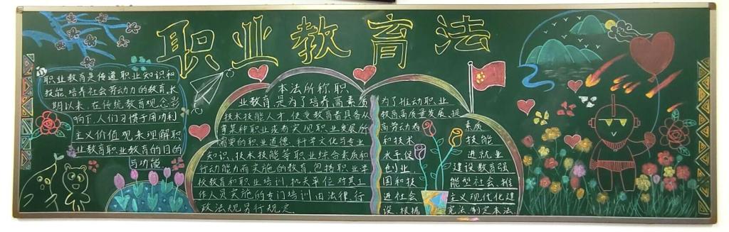 活动期间,各班级积极响应学院号召,结合专业特色,收集大量《职业教育法》相关材料,群策群力,巧妙设计,精心描绘,将自己对《职业教育法》的所思所悟都绘制成黑板报的形式。学生在制作和半包的过程中,加深了对《职业教育法》的学习和理解,提升了专业自信。
