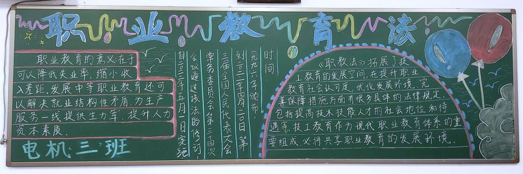 为了丰富校园文化生活,大力弘扬工匠精神,提高学生的文化素养,深入学习《职业教育法》的内容和精神。2022年5月29日,KY开元集团官网开展了以《职业教育法》为主题的黑板报评比活动。