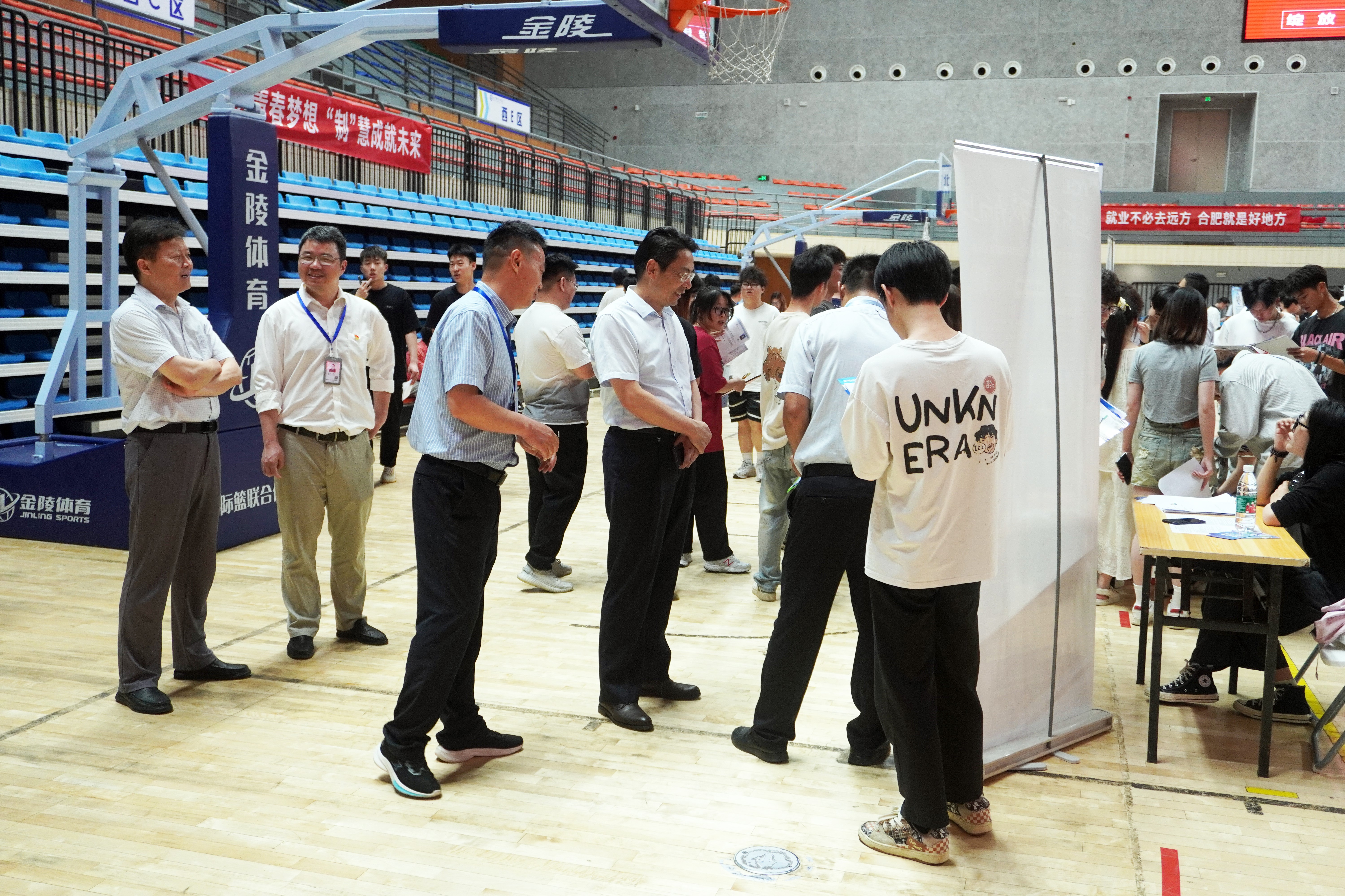 合肥市新站区、经开区、巢湖市人社局等领导,学校党委书记王杰才,陶宁、魏华、张如宝等学校班子成员,学生处处长王克勇等深入双选会现场调研,与来校企业代表和现场学生进行亲切交流,并对相关工作提出指导性意见,确保相关工作顺利进行。