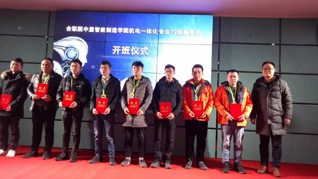 为贯彻执行《国家职业教育改革实施方案》提高技能型人才培养质量和针对性,实现专业设置与产业需求对接,课程内容与职业标准对接,教学过程与生产过程对接,毕业证书与职业资格证书对接,职业教育与终身学习对接,经过几个月的紧张筹备,2019年2月27日下午,合职院中显智能制造学院19级春季班开班啦!开班典礼在中显公司二楼电教室举行,合职院KY开元集团官网共有16名学生报名参加电一体化中显班,现已进入顶岗实习阶段。