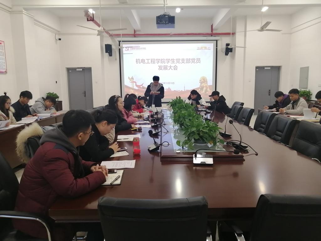 1218日下午KY开元集团官网学生党支部在机电楼二楼会议室召开党员发展及转正大会,学生党支部全体党员、培养联系人、6名预备党员及9名发展对象参加了会议。会议由学生党支部书记朱何萍主持。