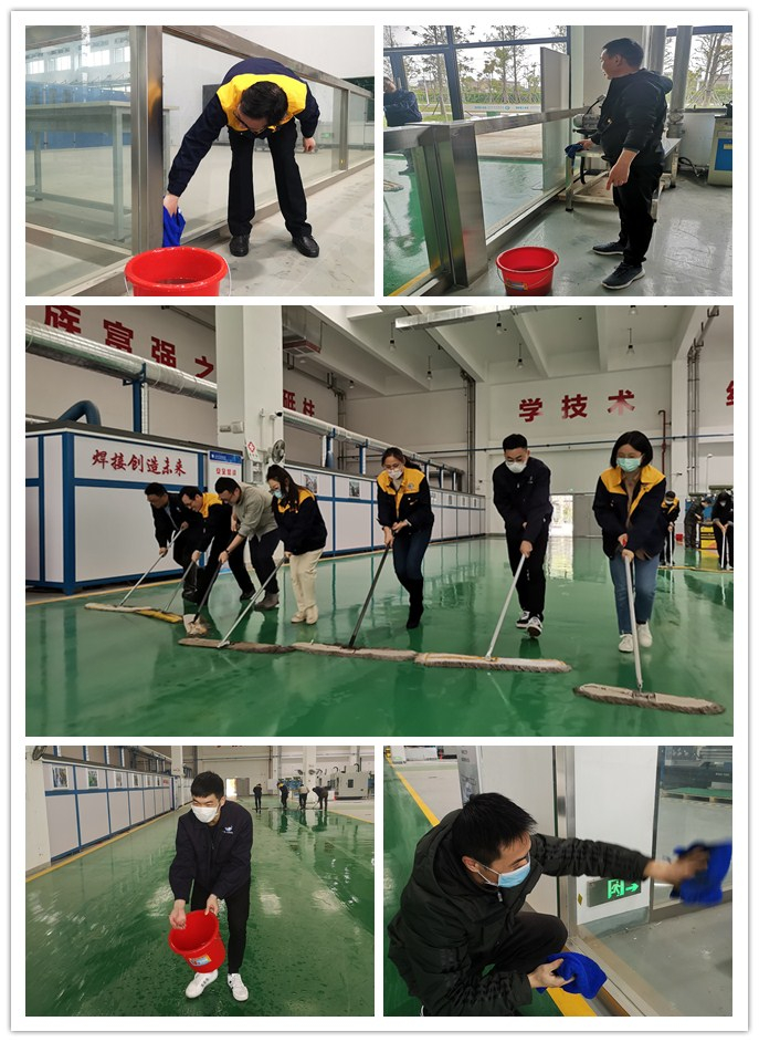 下午,在学院统一号召下,院领导班子带领学院在校教师对机电楼一楼大车间开展了卫生清洁活动。教师们身穿工作服,自带拖把、抹布等工具,化身“最美保洁员”,对车间出入口、地面、实训区、桌椅、门窗、器械设备等区域进行了认真打扫。经过二个多小时的辛苦劳动,在老师们同心协力下的大车间焕然一新。院领导班子表示这样的卫生清扫活动后期还会继续开展,旨在营造一个舒适、安全的环境。这次义务劳动也是KY开元集团官网党员教师践行“六个一次” 品牌活动 (当一次志愿者、深入一次宿舍、进行一次谈心谈话、做一次有关学生的调查研究、解决一次学生的实习困难、参加一次学生活动)的实际表现,充分体现了党员老师的先锋模范带头作用。