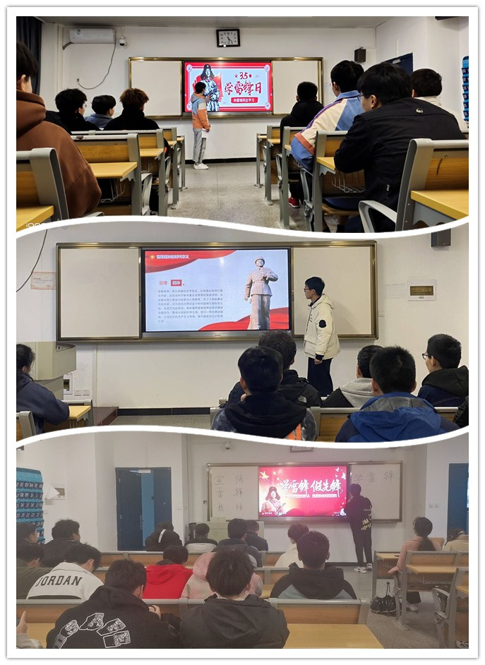 首先,各团支部召开了“3.5学雷锋”主题团日活动。在团日活动上,大家一起高唱《学习雷锋好榜样》,朗读《雷锋日记》,聆听雷锋故事,用各自的方式展示着自己所理解的雷锋风貌,赞扬雷锋的钉子精神,歌颂雷锋全心全意为人民服务的高尚品质。