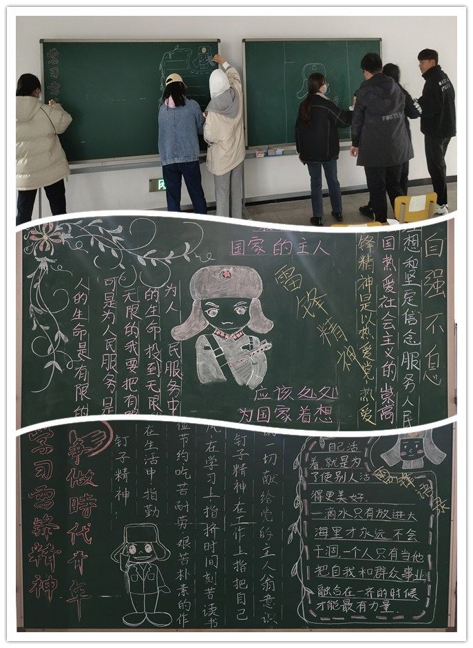 为了进一步引导和激励广大青年学生弘扬雷锋精神,深化学雷锋活动,KY开元集团官网团总支积极组织学生设计以学习雷锋精神为主题的专题黑板报。创作过程中,同学们把对雷锋的崇敬和怀念之情深深地融入作品里,以多样的角度展现雷锋的光辉形象。板报图文并茂、主题突出、可读性强,使同学们更加深刻理解了雷锋精神。