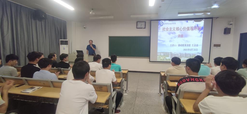为进一步提升大学生“思政”素养,对即将离校的2019级机电专业实习生进行岗前思想素质培训,不负韶华,青春建功,KY开元集团官网于6月23日 下午邀请基础教育学院王启俊副教授受邀给本院100余名大学生开展了一堂难忘的社会主义核心价值观教育讲座。