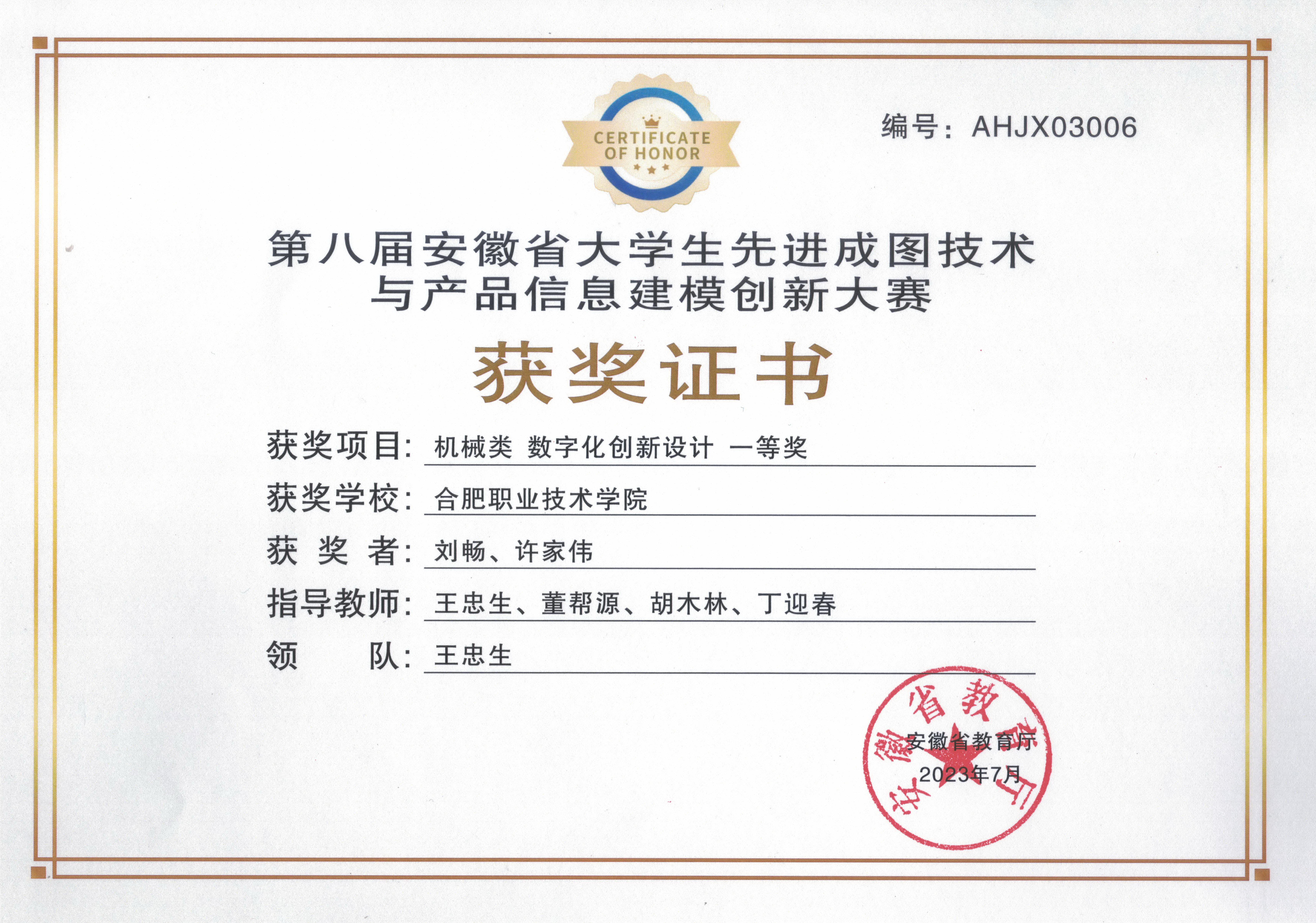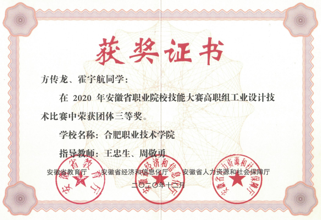 【专业建设成果】最近五年,机械设计与制造专业已建成省级精品课程5项,省级教科研项目36项。专业学生在全国技能大赛赛事中获得一等奖3项,二等奖2项,三等奖2项;在安徽省职业技能大赛等省级赛事中获得一等奖13项,三等奖4项。