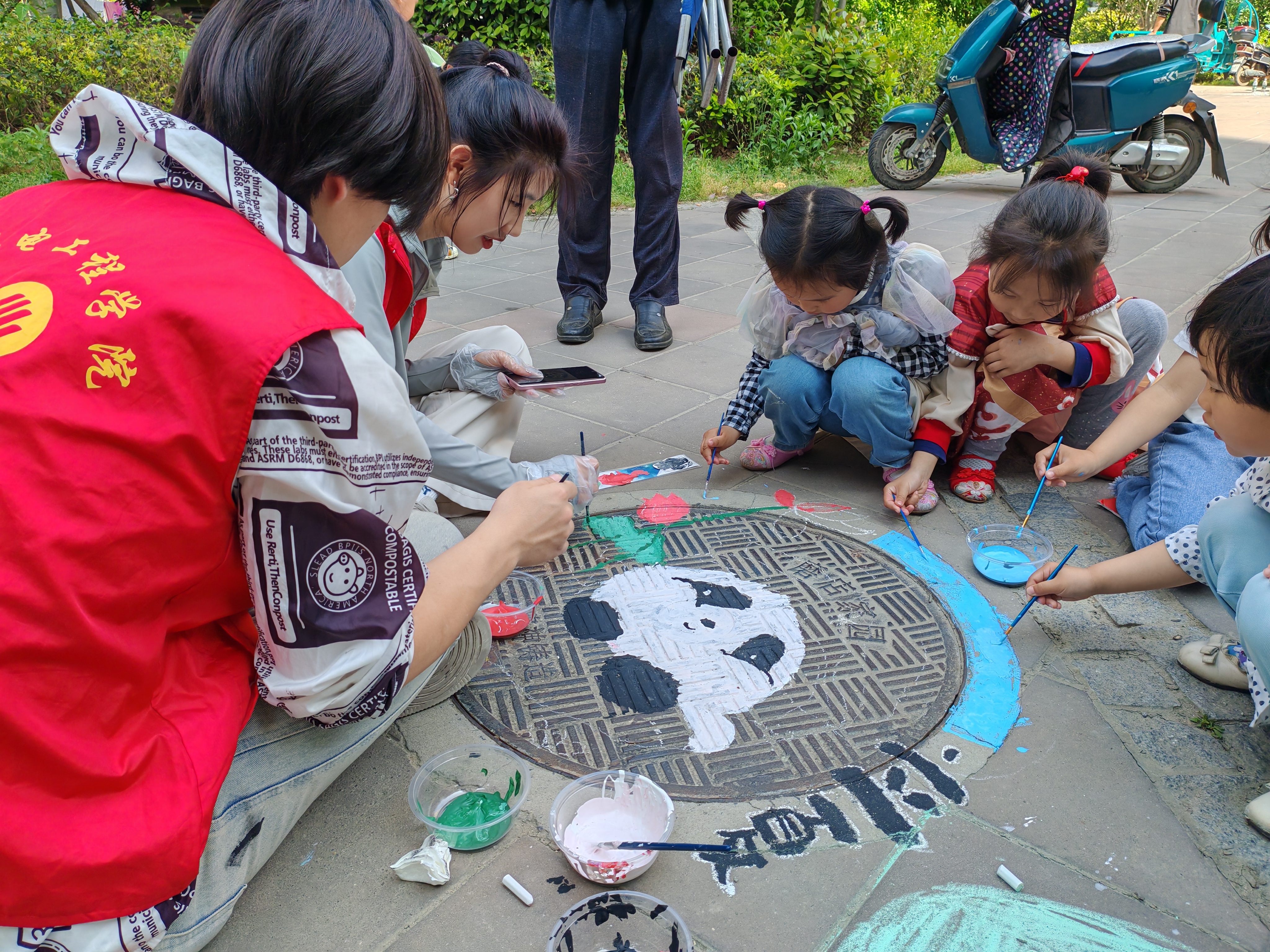岁月轻歌,流转至四月,万物复苏,满眼绿意盎然。为营造美丽宜居的社区环境,发挥社区育人功能,4月27日下午,KY开元集团官网“小螺钉”志愿服务队来到蔡岗居委会同德苑小区,和社区工作人员一起举办了井盖彩绘活动。