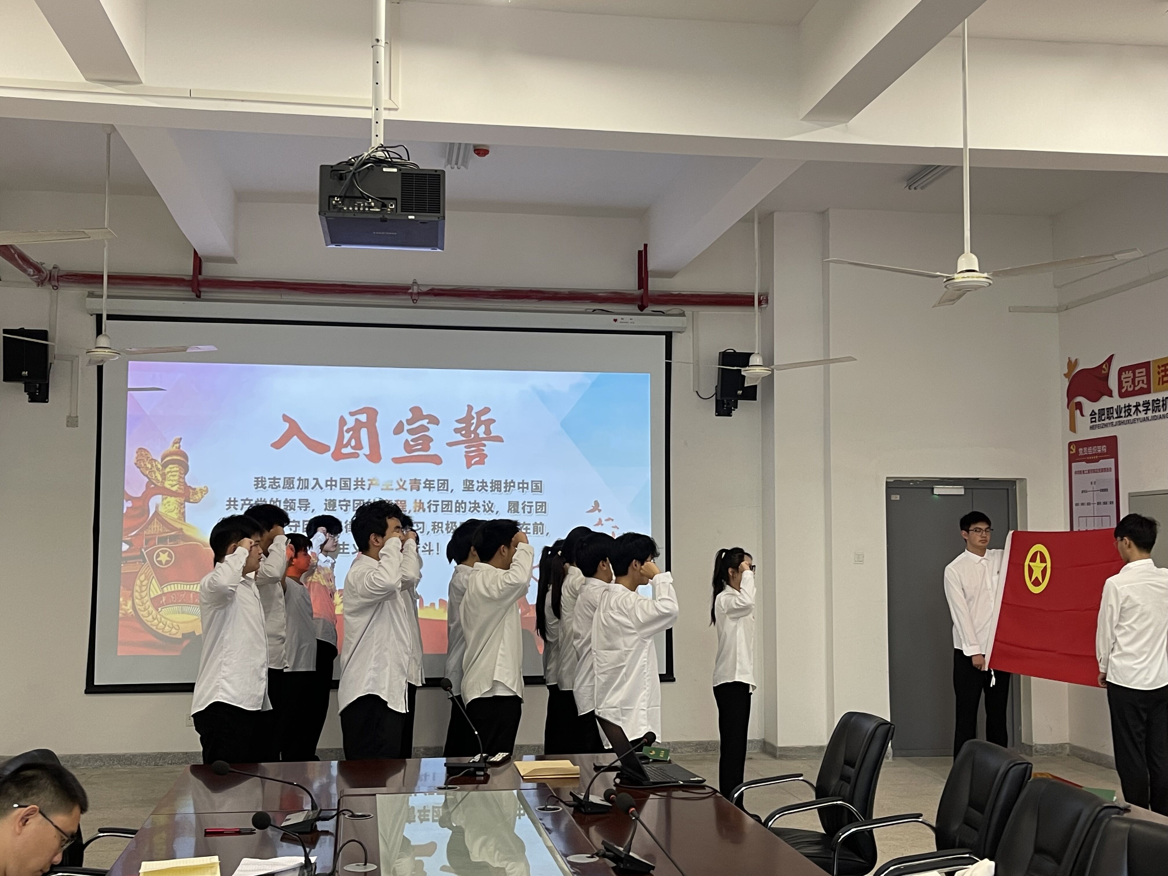 23机电5班钱晨同学代表全体新团员发言,他向团组织庄严承诺,牢记团章,履行团员义务,坚决执行团的决议,积极参与团组织的各项活动,为团旗添彩,为党旗增光。23机电4班洪亮同学代表优秀团员发言,他向新团员表示祝贺,并勉励各位团员牢记团员的身份和使命,努力提升政治觉悟、道德品质与综合素质,为实现中华民族伟大复兴的中国梦贡献力量。