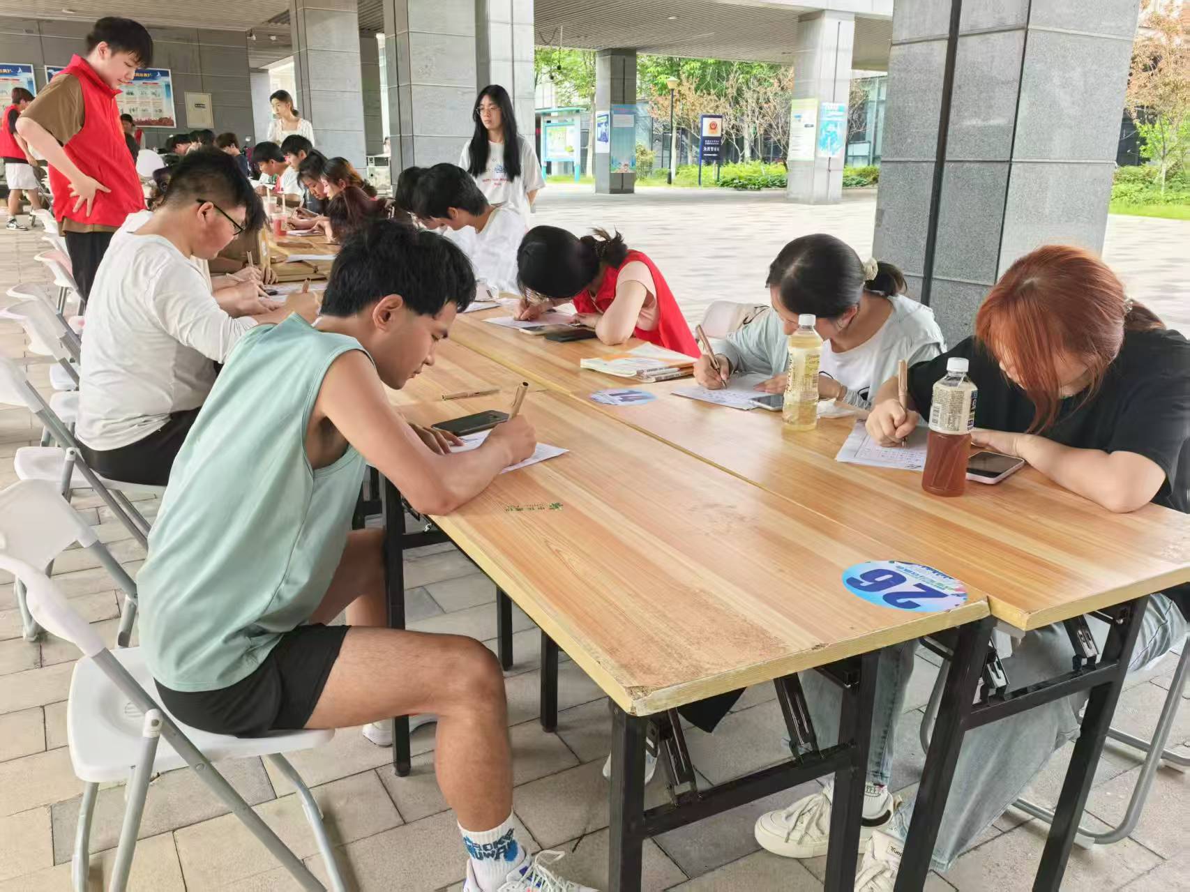 在北教学楼门口的钢笔字活动现场,同学们以笔寄情,挥毫泼墨。展台上摆放着《少年中国说》《沁园春·长沙》等经典诗词选段,也有同学自发书写原创励志语句。24机械3班张书豪写下“志之所趋,无远弗届”,他说道:“钢笔字不仅是技艺,更是对初心的沉淀。”现场参与同学完成作品后,可凭作品向志愿者兑换书签、笔记本等文创奖品。活动既弘扬了传统文化,也通过笔墨传递了青年学子对家国情怀的深刻理解。