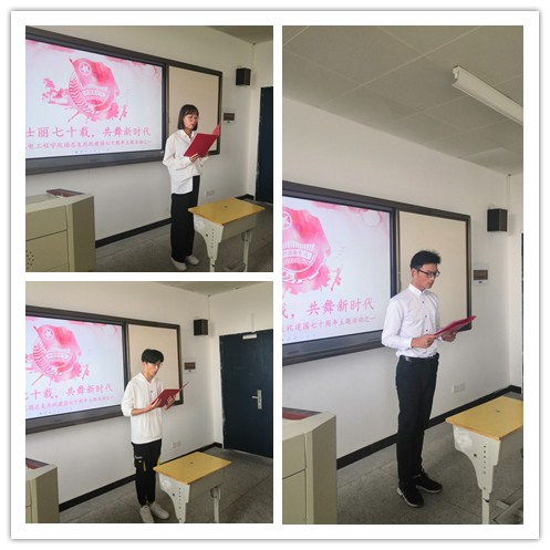 此次活动旨在为祖国庆生,分为诗歌朗诵和主题画报两个部分。在诗歌朗诵活动中,参赛选手们伴着婉转的旋律和有力的节拍,声情并茂地朗诵了《长江之歌》、《爱祖国,更爱家乡》、《长城和运河》等经典红色诗词,他们用慷慨激昂、精神饱满的朗诵,倾诉着对祖国母亲的歌颂与祝福、对中国共产党的感激和热爱。在主题画报活动中,同学们利用手中的工具在画纸上描绘着祖国的壮丽山河,描绘着祖国从无到有,从落后到领先的七十年峥嵘岁月。这一笔一划,将伟大新中国的过程娓娓道来,同时也体现了同学们身为中国人的自豪之情。