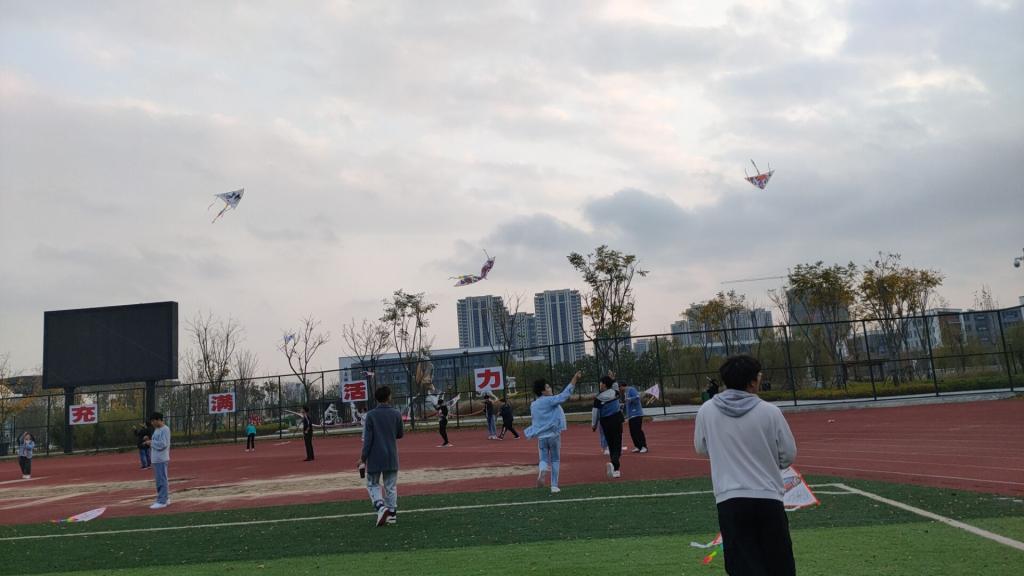 经过一段时间的努力,大家最终完成了自己的作品,在志愿者的带领下到达操场放飞。