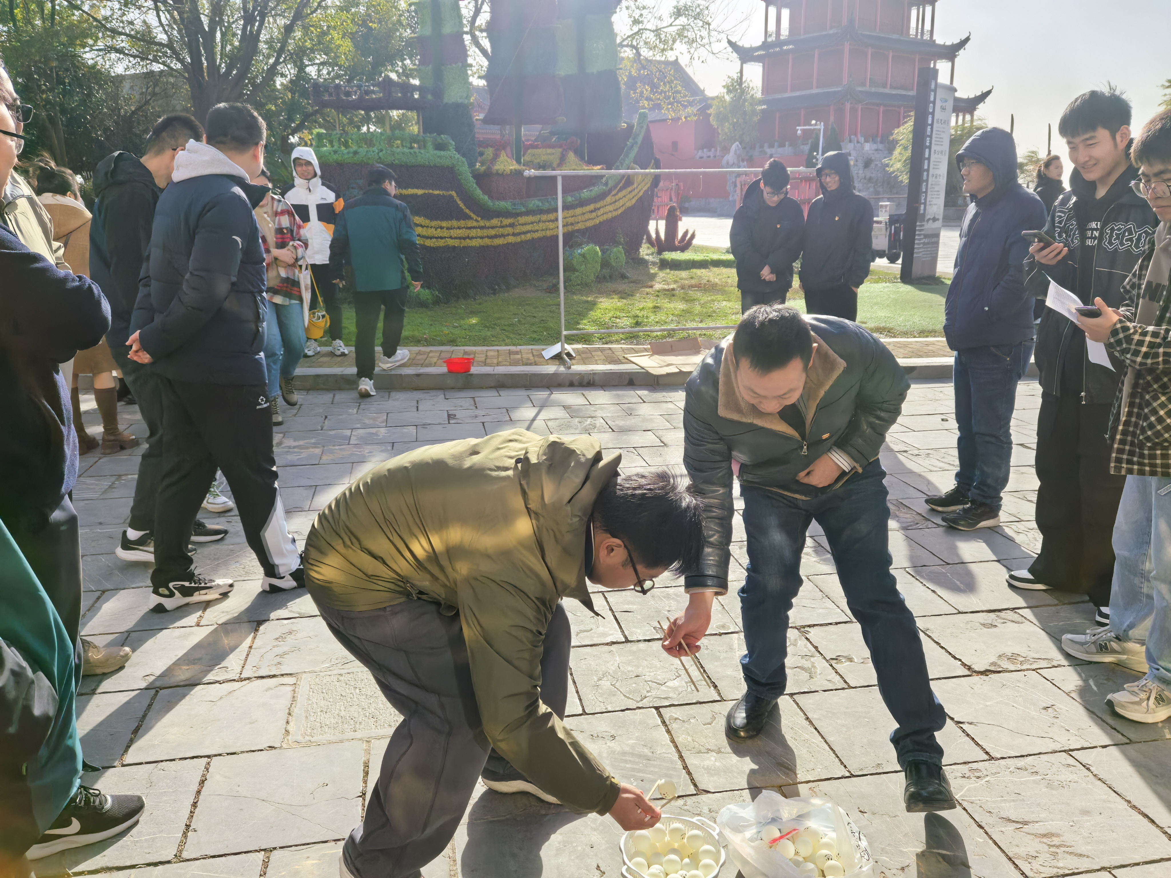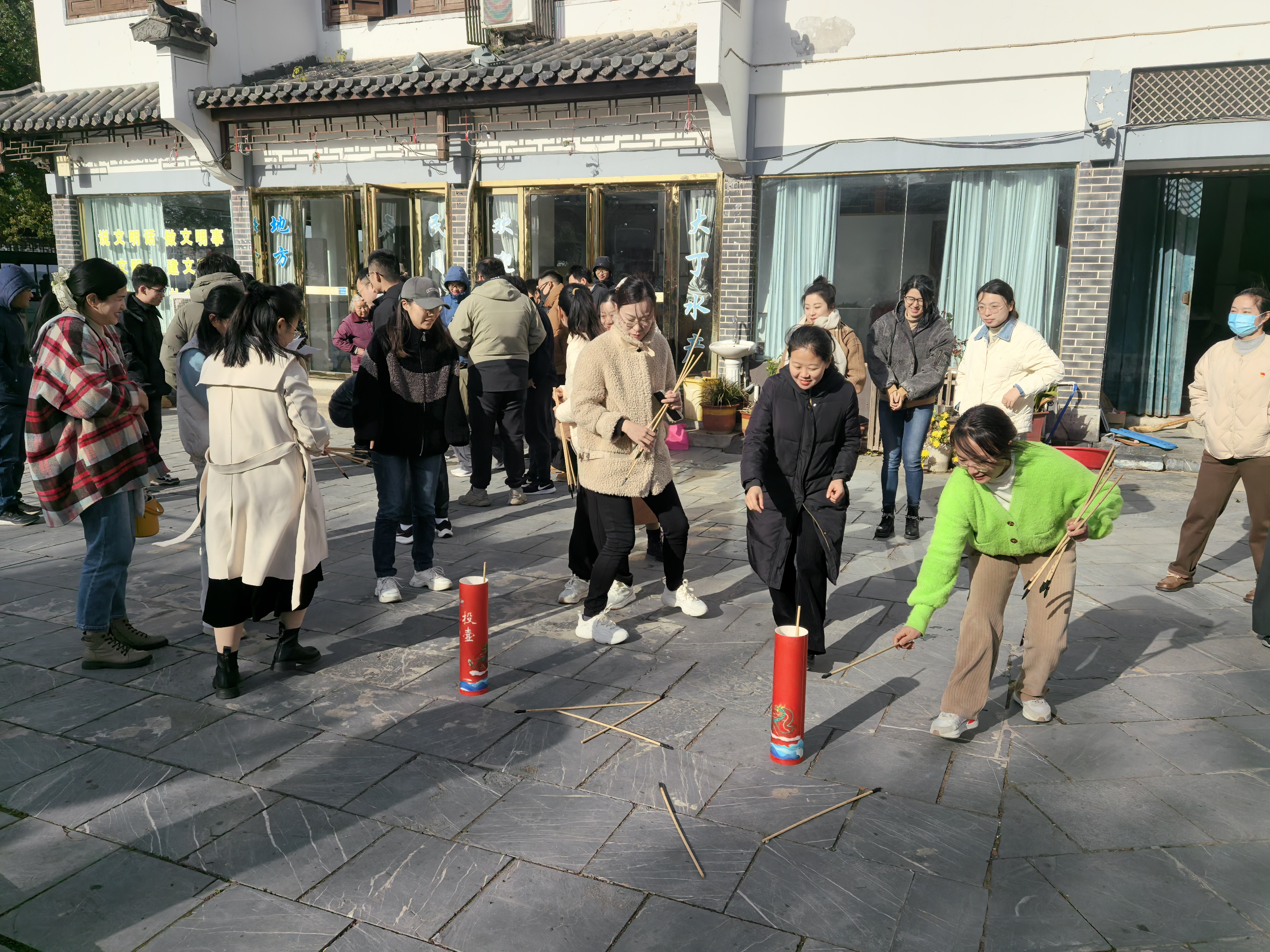 本次趣味运动会共设置了包括“争分夺秒”和“投壶”两个比赛项目。在“争分夺秒”项目中,参赛者需要在限定时间内完成运送乒乓球的任务,考验了教师们的反应速度和协调能力。“投壶”游戏源自古代,是一种通过将箭矢投入距离不等的壶中来计分的比赛。现代的“投壶”游戏虽然简化了规则,但依然保留了对准确度和技巧的高要求。学院的老师们在项比赛中展示了极高的精确度和控制力,同时也在趣味运动会项目中寻找乐趣。