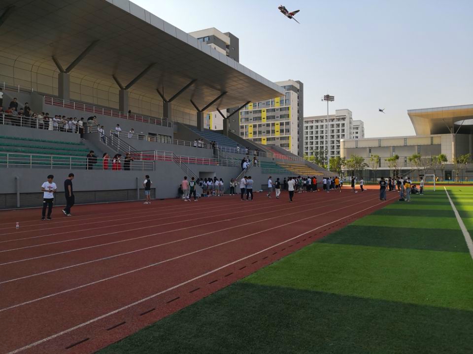 第三站是KY开元集团官网汇心湖校区,协会成员在学校操场为前来观看的同学们献上了精彩绝伦的歼10双机特技飞行表演,落叶飘,横滚,蛇滚,超低空通常等特技动作,赢得在场观众的阵阵喝彩。
