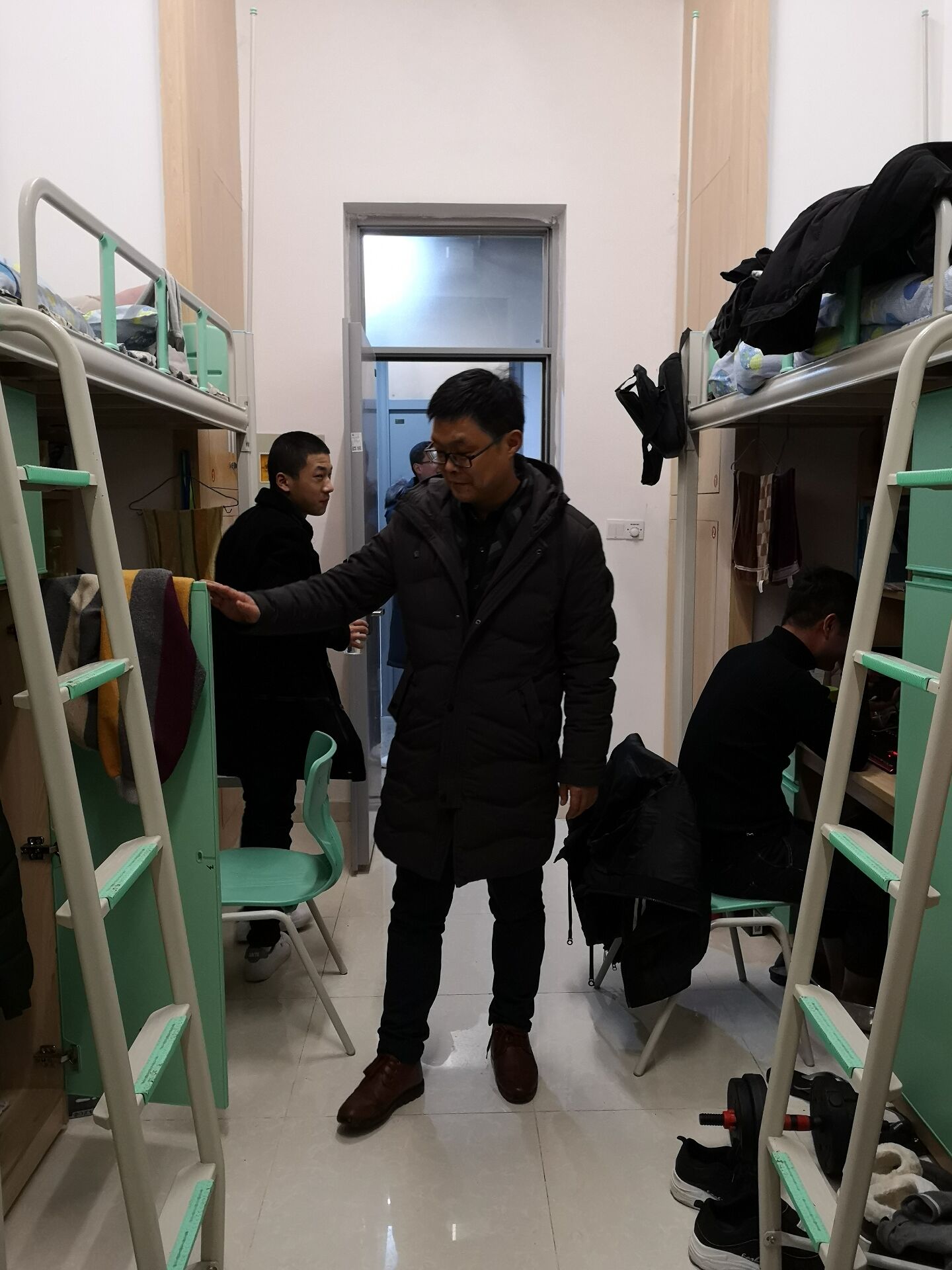 11日晚,王克勇书记亲率所有班主任来到KY开元集团官网所在宿舍楼层,一层层的看、一间间的查、一个个的问,将宿舍“三问三查”工作做足做实。王克勇书记首先代表KY开元集团官网向全体同学送去新年问候,希望同学们在接下来的考试中取得好成绩,随后向那些愿意放弃假期留校参加大赛培训的同学送去真挚慰问和真心祝福,最后也对本学期宿舍评分较低的宿舍、出现过违规的宿舍进行了“问责”,对他们现场进行了批评和教育。
