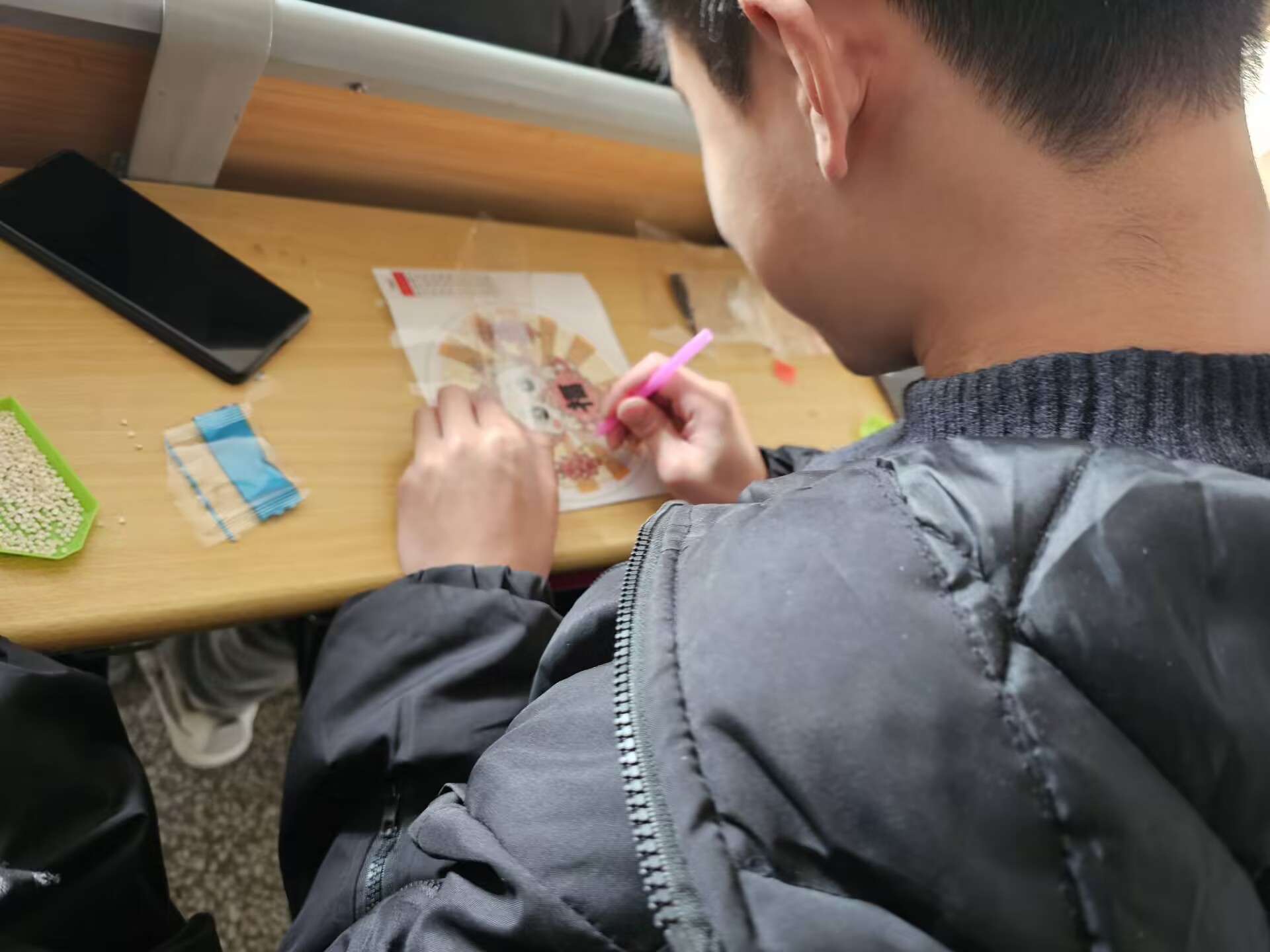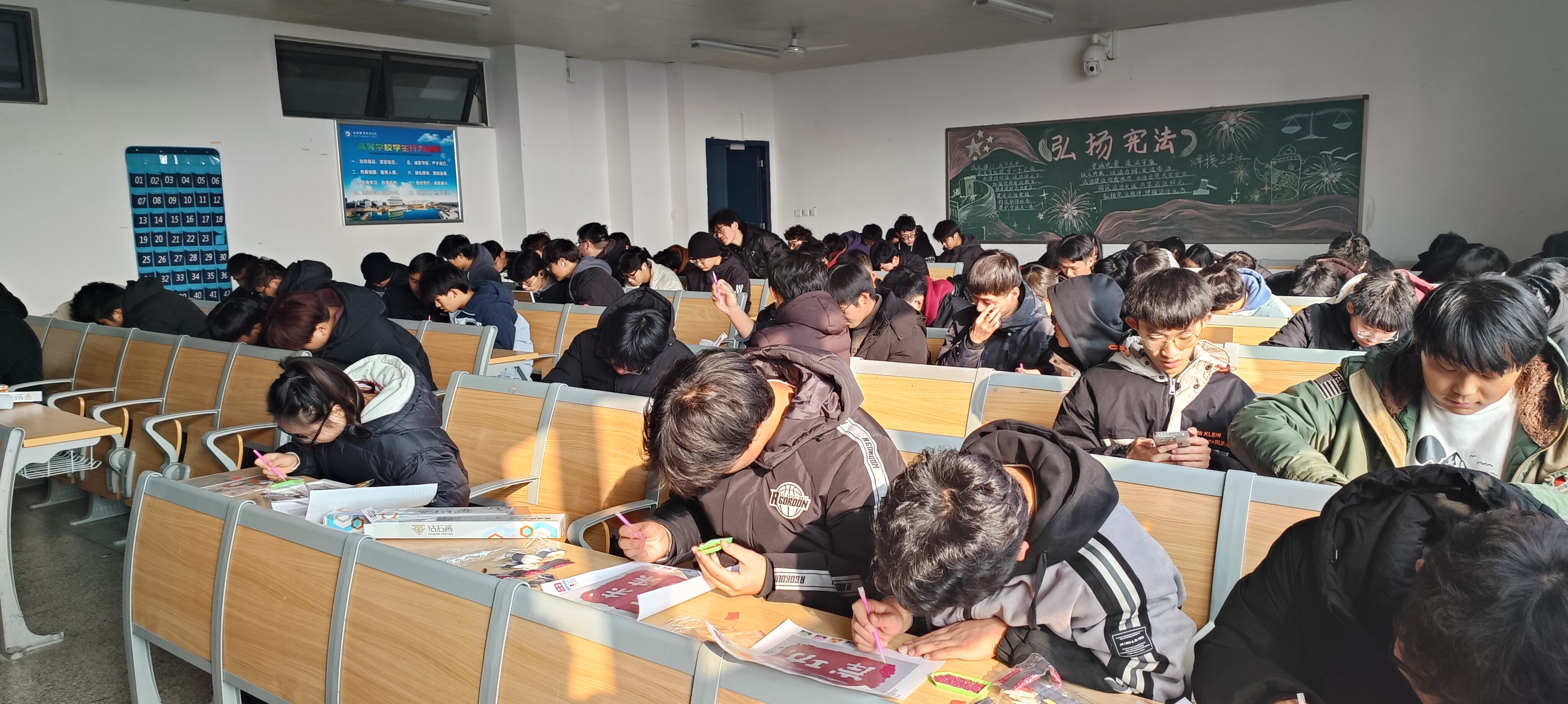 “磨刀不误砍柴工”活动准备阶段,在工作人员的组织下同学们有序领取材料,挑选自己心仪的图案,随后活动组织者为大家讲解如何制作钻石画。活动开始后,同学们小心翼翼地粘贴每一颗钻石,耐心、细心地对待每一个步骤,用心制作自己独一无二的精美作品。有的秀气精致,有的大气磅礴,每一幅都展现出同学们的独特个性和无限创意。同学们借助钻石画的感悟以及体验,得到了温暖治愈的力量,在制作过程中,大家不仅寄托了自己新年的愿望,锻炼了自己的动手能力,同时还能舒缓内心的压力。制作完成后,同学们进行了相互交流与分享并写下了对新年的祝福。