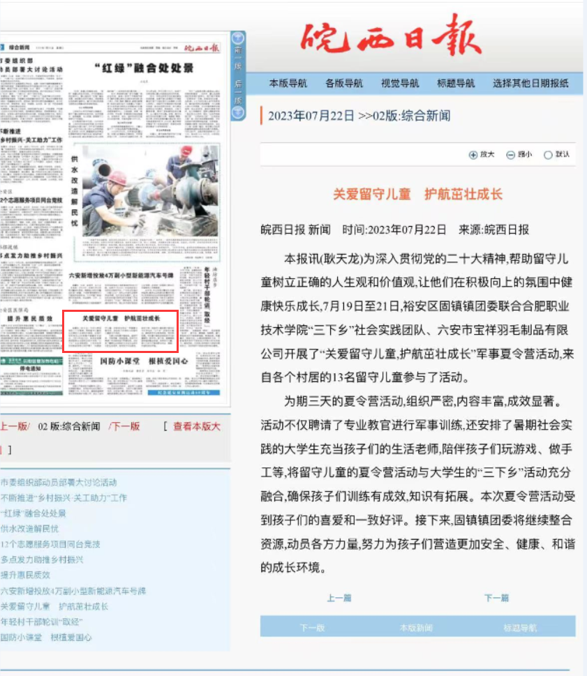 本次KY开元集团官网暑期社会实践成效显著,活动过程中受到皖西日报、裕安区共青团委等当地主流媒体的广泛关注和报道,引起社会良好的反响。团队成员们也受益匪浅,大家表示:这次实践旅程不仅是一场脚踏实地的“劳动课程”,也是一场提升自我的“人生课程”,更是一场学习贯彻习近平新时代中国特色社会主义思想和党的二十大精神的“必修课程”。