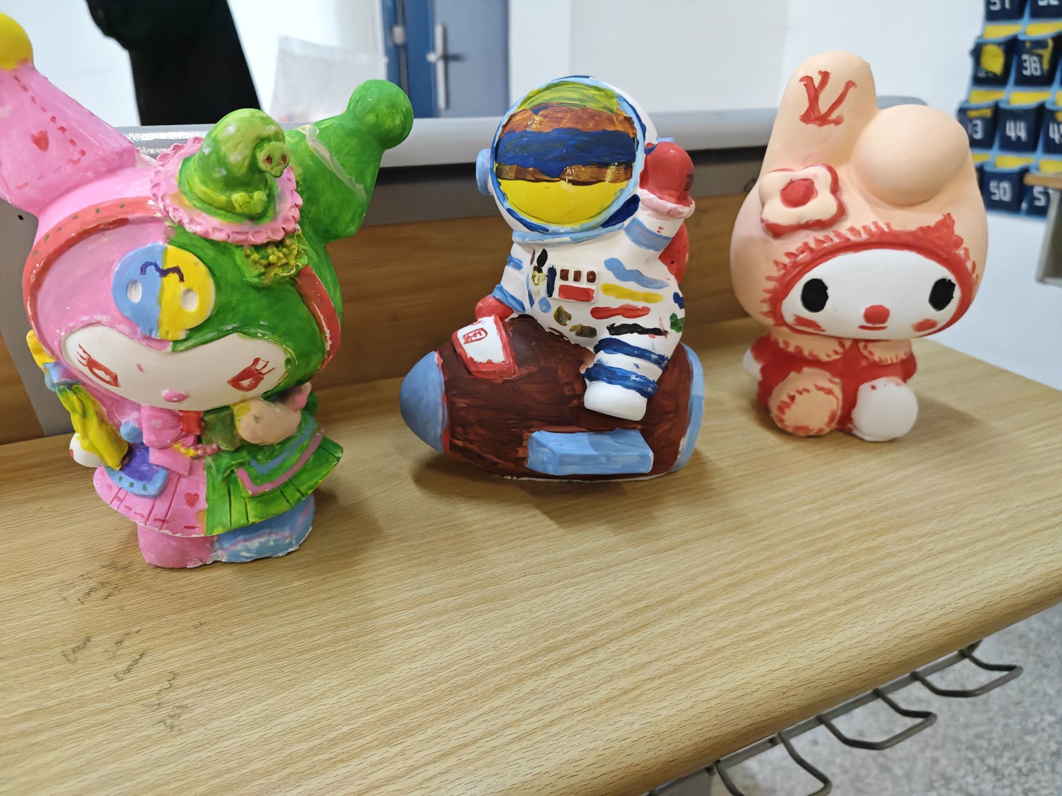 制作过程中,同学们相互帮助,分享颜料,为彼此的作品提出建议,气氛温馨和谐。活动接近尾声时,一个个色彩斑斓、充满创意的石膏娃娃逐渐完成,看着自己亲手制作的作品,同学们脸上露出了满意和自豪的笑容,他们不仅收获了快乐,更感受到创造带来的成就感。