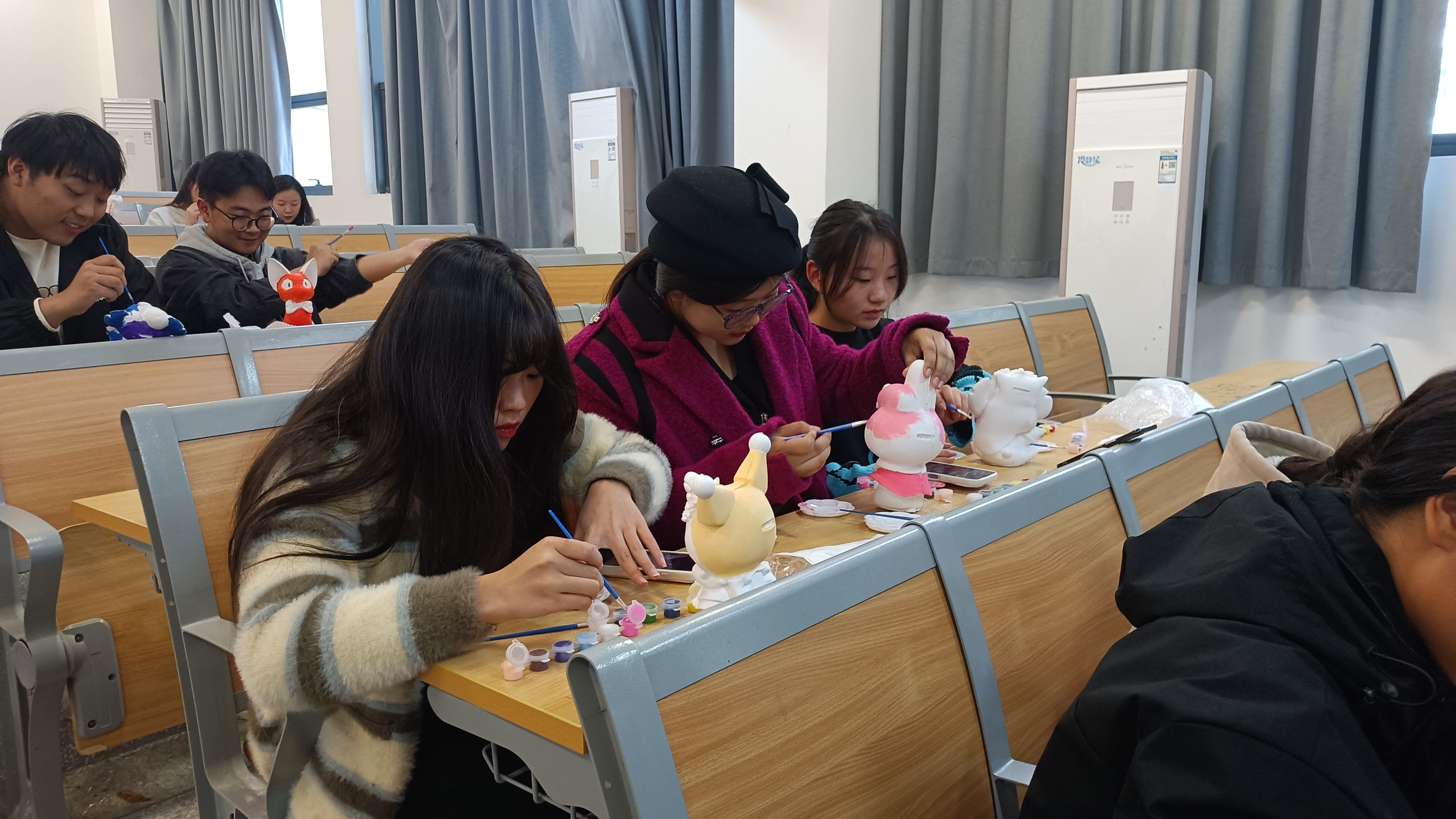 本次活动主要利用石膏材料进行彩绘。活动还未开始,志愿者们便早早来到现场为同学分发彩绘工具和材料,大家根据自己的喜好,选择不同模样的石膏娃娃进行彩绘,展示自己独特的艺术风格。有的同学选择临摹事先准备好的图案,如动漫人物、游戏人物等,用画笔细心地勾勒,将每一个细节都展现得淋漓尽致,原本素面无华的石膏娃娃变得生动有趣;有的同学则选择发挥自己的想象,通过细腻的笔触、丰富的色彩搭配,将生活中的点滴感触融入画作,描绘出他们心中的美好世界。