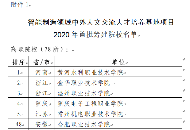 近日,从教育部中外人文交流中心发布的《关于智能制造领域中外人文交流人才培养基地项目2020年入选院校的通知》获悉,全国遴选了新疆大学等8所本科院校、黄河水利职业技术学院等78高职院校和温州市职业中等专业学校等14所中职学校为智能制造领域中外人文交流人才培养基地项目2020年首批筹建合作院校。KY官网KY开元集团官网与教务处代表学校积极申报并成功入选首批筹建合作院校,也是安徽省唯一一所高职院校。