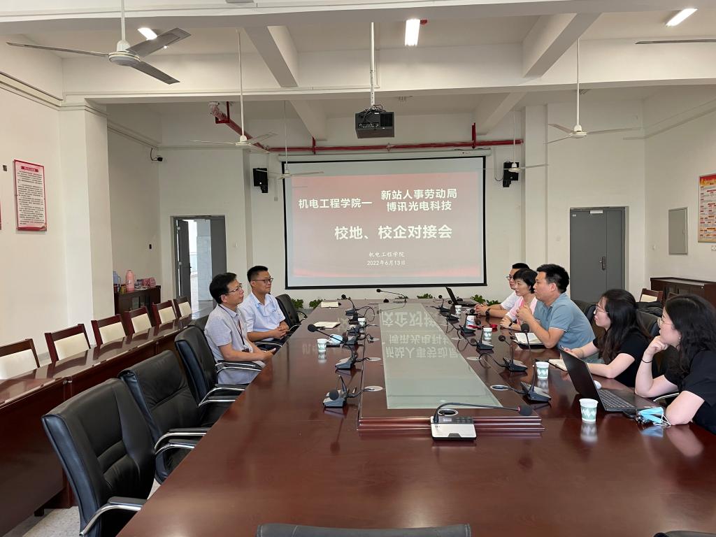 为进一步加强校企合作,深化产教融合,6月13日下午新站区人事劳动局携博讯光电(合肥)股份有限公司一行来访KY开元集团官网,校党委委员、办公室主任王海,KY开元集团官网党总支书记王克勇,院长胡木林和相关教师参加了此次对接会。