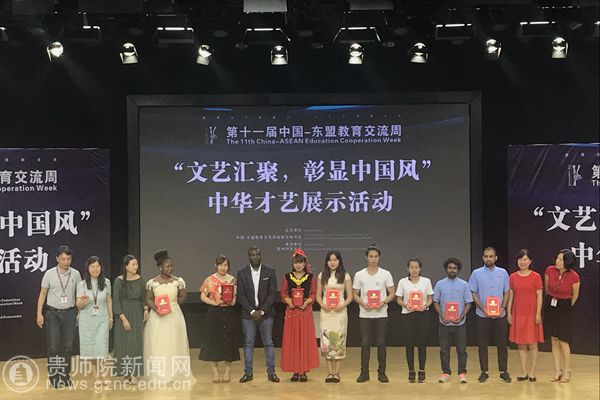 本网讯 6月19日下午,由中国——东盟教育交流周组委会主办,第十一届中国——东盟教育交流周之“文艺汇聚,彰显中国风”中华才艺展示活动在贵州财经大学举行。来自省内外各高校的14支留学生代表队伍参加了此次活动,bat365官网文学院;留学生班主任王蕴华、科任老师徐望带领bat365官网留学生队伍也参加了本次活动。