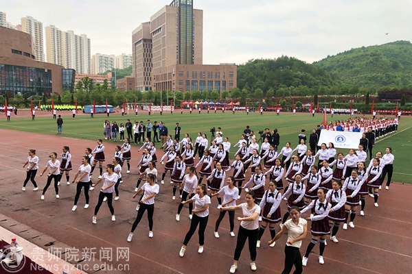 放飞梦想,激情荡漾、勇往直前,艺术学院代表队在向你我宣誓:他们是运动会上靓丽的风景线。