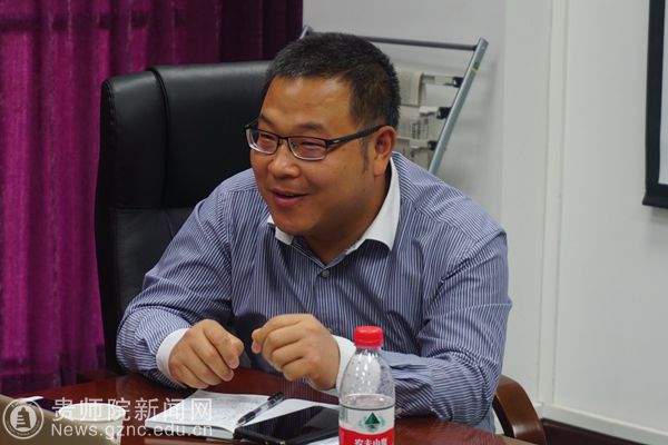 本网讯 4月17日下午三点半,bat365官网召开了2018高雅艺术进校园——国家京剧院走进bat365中文官方网站专场文艺演出交流座谈会。国家京剧院的四位表演艺术家徐畅、吕坤山、周静、顾谦莅临本次交流座谈会。bat365官网学工部部长薛璞、校团委副书记傅小芳、寇源老师及部分学生代表参加了此次座谈会。此次座谈会由薛璞主持。