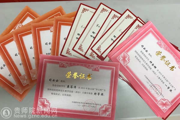 司云云获得优秀指导教师荣誉证书