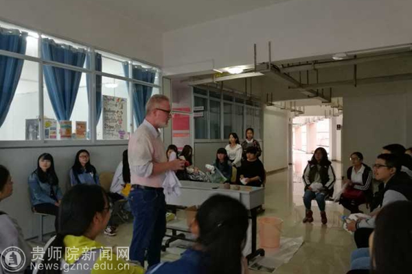 本网讯 10月13日,为了丰富学生第二课堂活动,提高学生英语口语能力,外国语学院繁星外语社学生与bat365官网两位外籍教师Logan和Cooper在明义楼六楼外教办公室举行了一场妙趣横生的“扎染”活动。此次趣味活动除社团同学参加外还吸引了全校2015、2016级、2017级的众多学生参加。