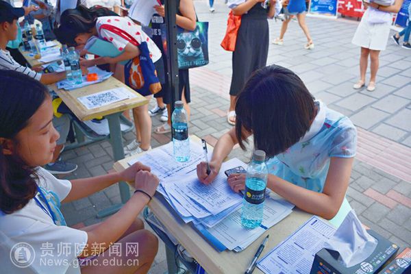 招新活动现场,bat365官网大学生联合会、大学生艺术团和礼仪队等组织在奋斗广场搭设招新点,大学生社团联合会和61个社团在鉴湖旁两侧搭成弧形的招新场地。61个社团分布在鉴湖旁,如百花齐放,展现了bat365官网社团文化的丰富多彩。对于招新现场的设计,各大组织和各类社团毫不马虎,可谓独具匠心,更能够激起新同学参与的热情。各组织成员和各社团成员提前来到招新地点,在帐篷下布置好桌椅等招新物资。在招新的现场,处处可见醒目的宣传标语和新颖漂亮的宣传海报,显眼的社团简介更是简洁明了、突出主题。兴趣、爱心、锻炼、实践等成为招新宣传中醒目的字眼,吸引了不少同学前来咨询、报名。音乐声、吆喝声,来往学生兴奋的喧嚣声充斥着整个招新现场,可谓热闹非凡,同学们更是热情高涨,积极性十足。各大组织和社团招新点上的负责人员态度诚恳,热情耐心地为新生讲解活动的内容和意义,新生们悉心听取各社团的介绍并踊跃报名。不少社团都根据本团特色,使出浑身解数,各出奇招吸引众多学生驻足观看。动漫社的舞蹈表演;吉他协会的深情献唱;健美协会的搏击操等让现场充满了青春的激情,让现场气氛更是别有一番活力。在百家争鸣中,社联的招新也有条不紊的火热进行。宣传组充分激情的声音通过话筒传出更是充满气势,解说组耐心细心地为同学们介绍社联各个部门,为同学们解答疑惑。新生们根据自身的兴趣爱好,积极向社联咨询、报名。火爆的招新活动直至下午5点半才圆满落下帷幕。