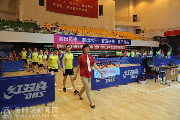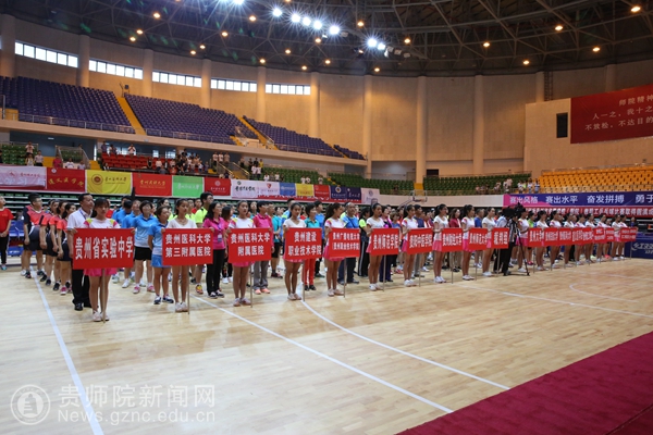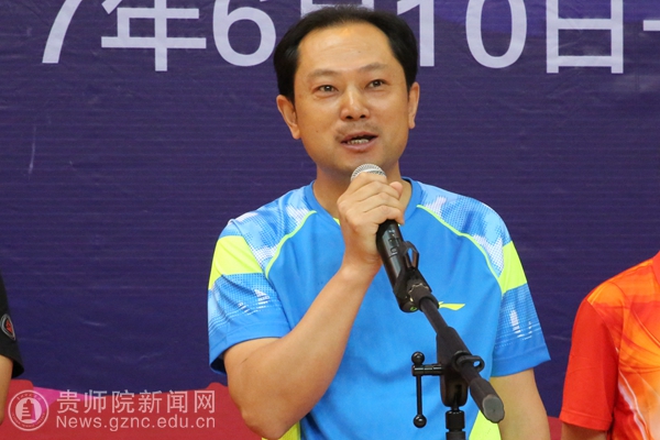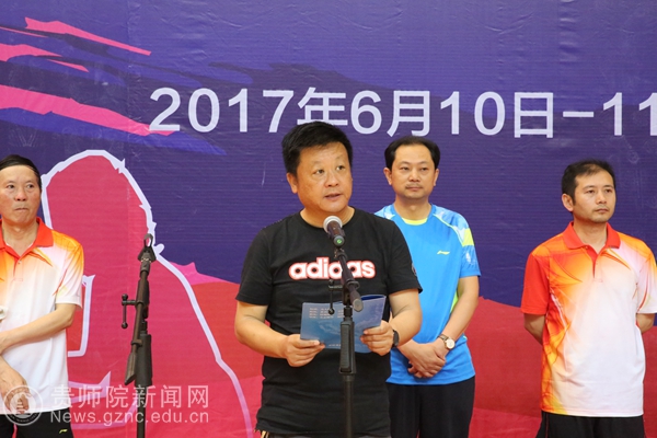 本网讯 6月10日上午,2017年贵州省直学校(附院)教职工兵乓球比赛在bat365官网体育馆举行了开幕式。贵州省教育厅党组成员、省委教育工委副书记赵廷昌,原贵州师范大学校长、贵州省政协科教文卫专委会副主任伍鹏程,贵州师范大学副校长乙引,bat365官网党委书记石培新,党委副书记令狐彩桃以及其他院校相关领导人出席活动。来自十八支院校参赛队伍以及裁判员参与了本次开幕式。令狐彩桃主持开幕式。