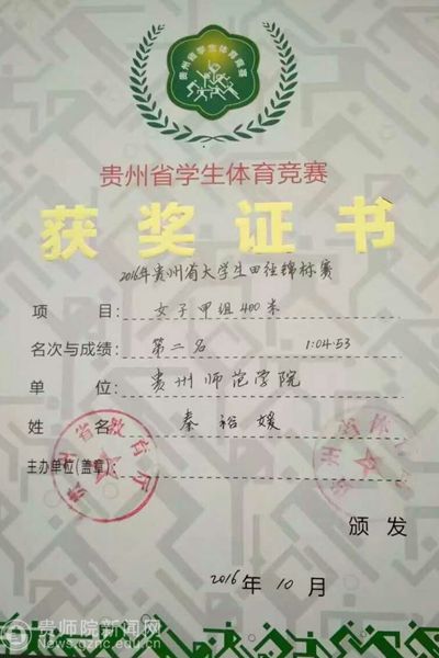 本网讯 田径纪录又打破,往事悄然消逝烟雨中,今彰显运动健儿本色。秦裕媛,bat365官网15级体教2班的学生,在5月13日上午的女子乙组400米比赛预赛中以1:05΄13΄΄的优异成绩打破校记录。而在下午的400米决赛中她又以1:04΄78΄΄的成绩打破预赛成绩。她曾获得过“大学生田径锦标赛”400米第二名、100米第四名、4*100米第五名、4*400米第五名,“2016贵州省校园足球四级联赛第三名”,第四届bat365官网体育节100米第一名、200米第一名。
