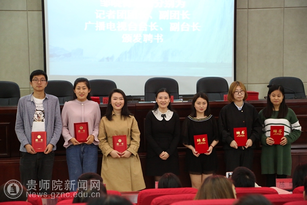 邹晓青,孙秀华和孙筑萍分别为大学生记者团和广播电视台的主席团成员与部长团成员颁发聘书。